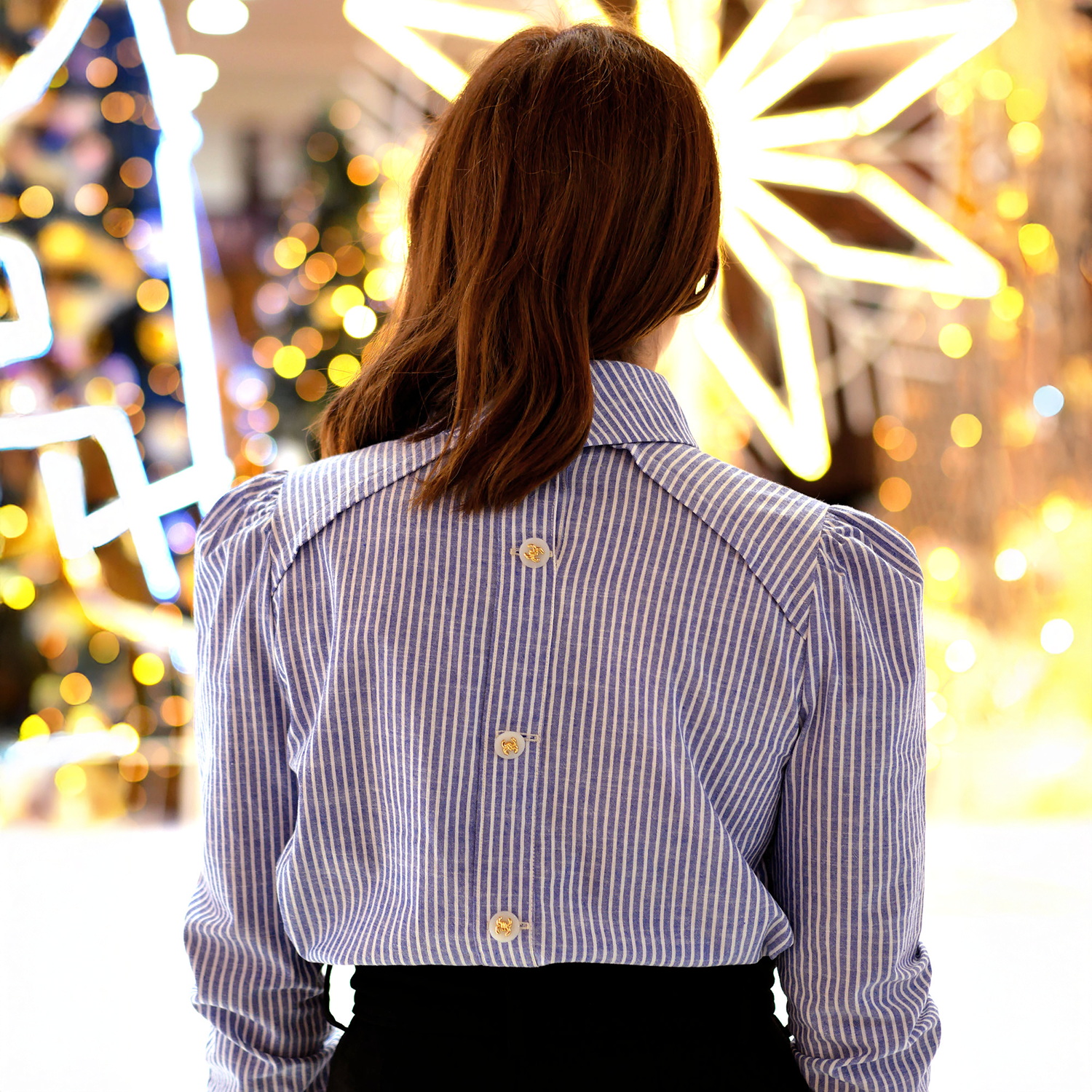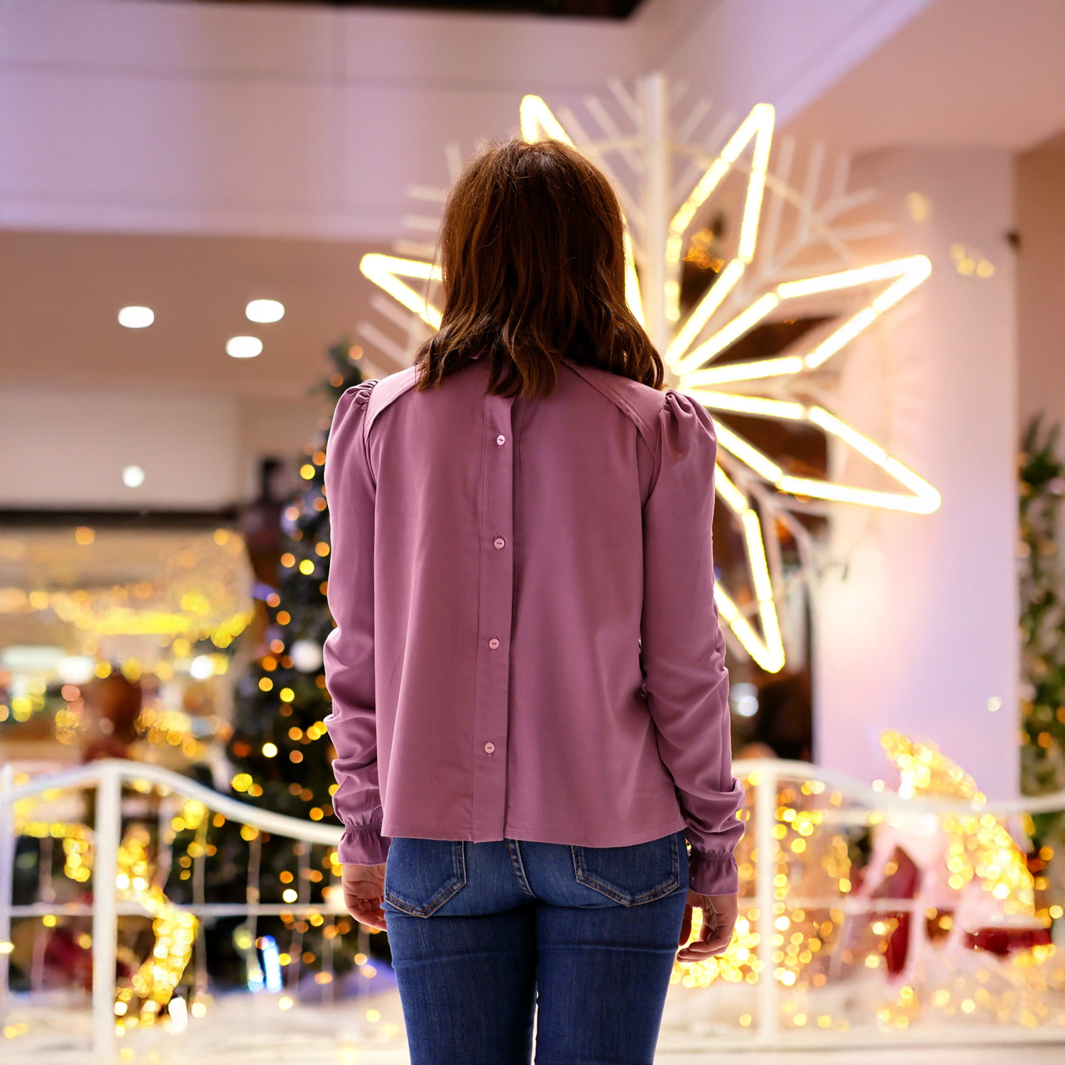 - Patte de boutonnage et col chemise : Un duo au dos qui ajoute du caractère à cette blouse.