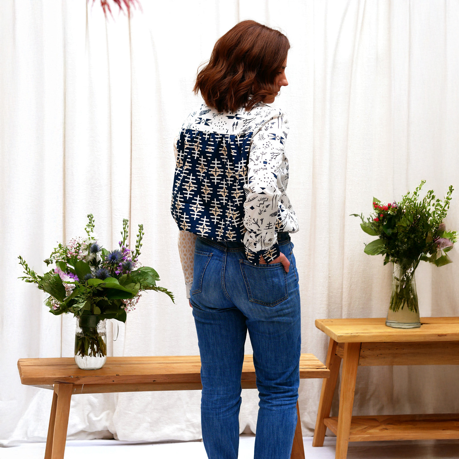 La chemise Toscane c’est un patron aux multiples possibilités. Une base de chemise liquette “oversize” avec son empiècement dos qui revient sur les épaules et ses poches plaquées.