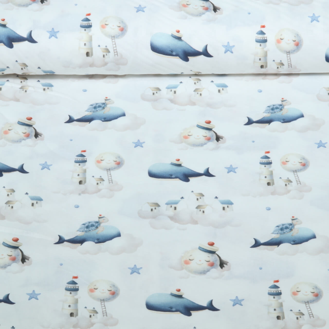 Coton tissé - Baleine Blanc