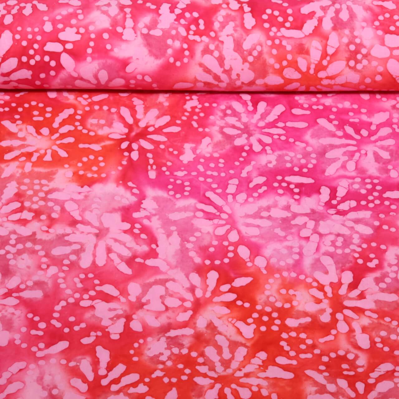 Coton tissé - Batik fait main Fleurs Rose vif