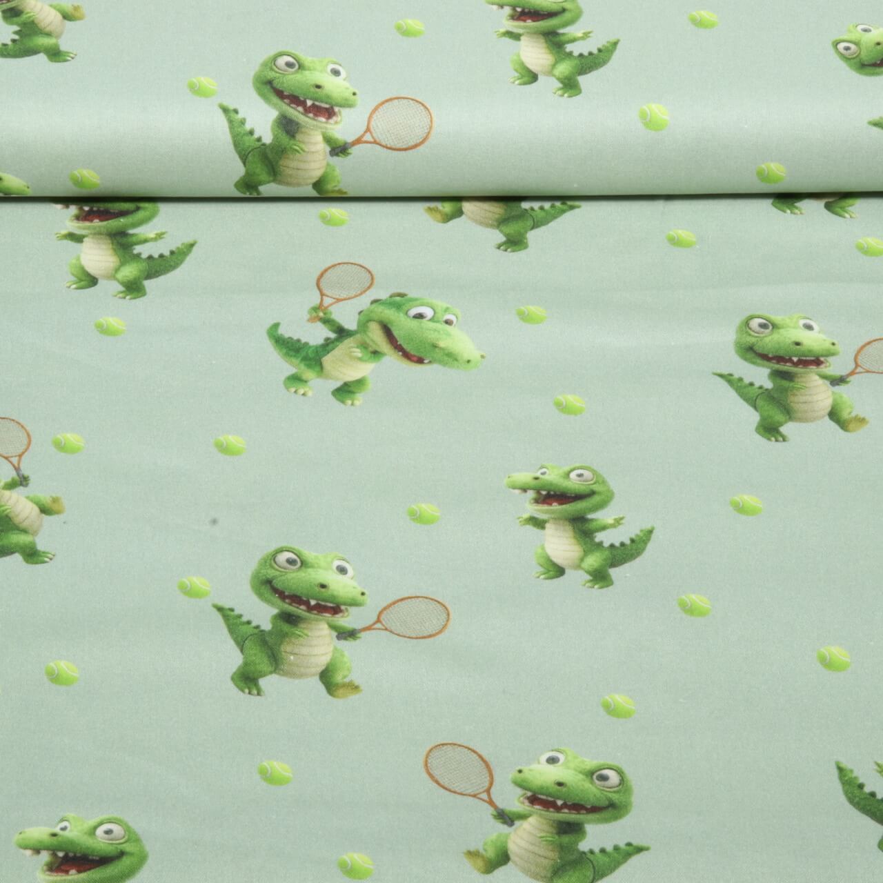 Coton tissé - Impression numérique Crocodile de tennis Vert menthe