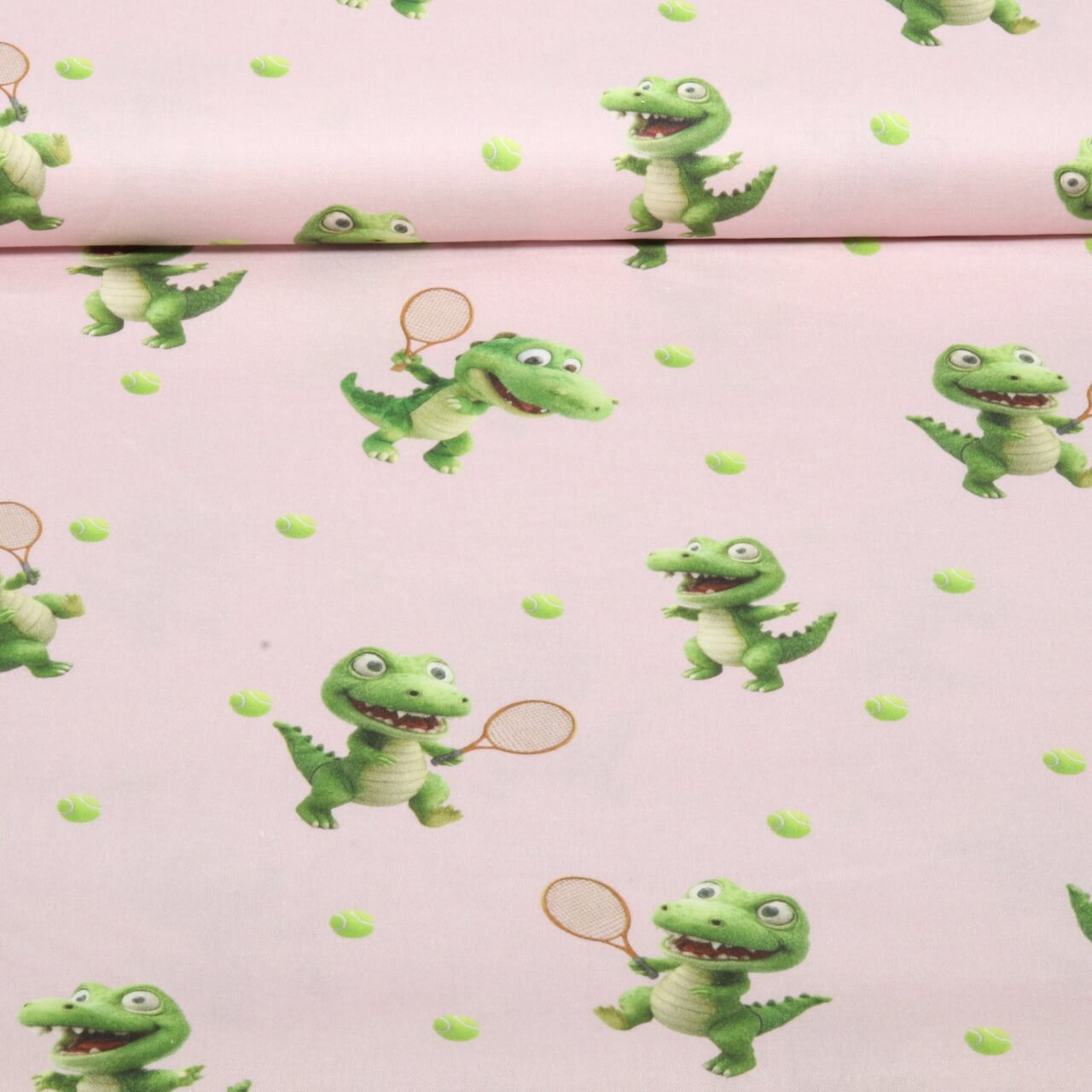 Coton tissé - Impression numérique crocodile de tennis Vieux rose