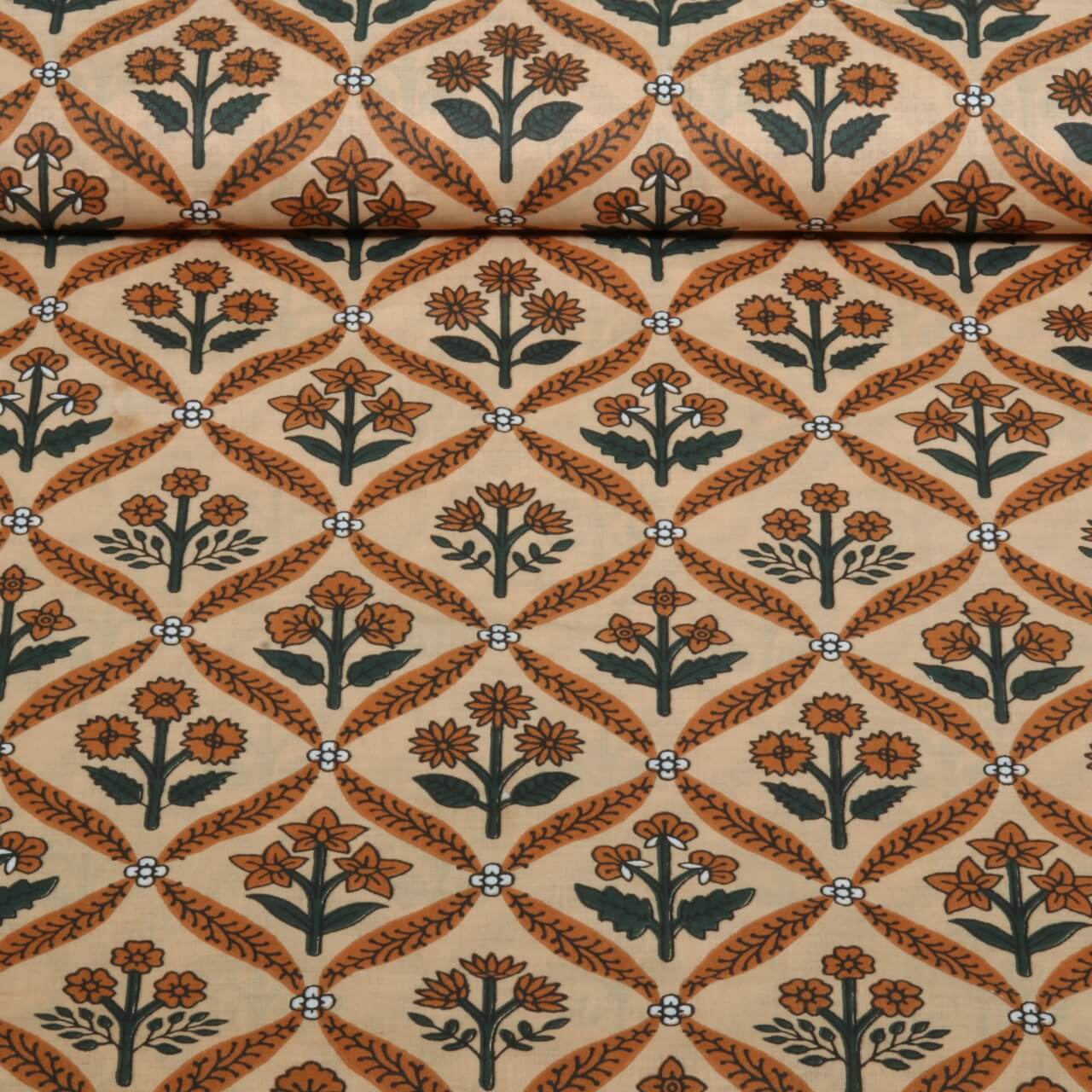 Coton tissé - Imprimé à la main Fleurs Rétro Sable