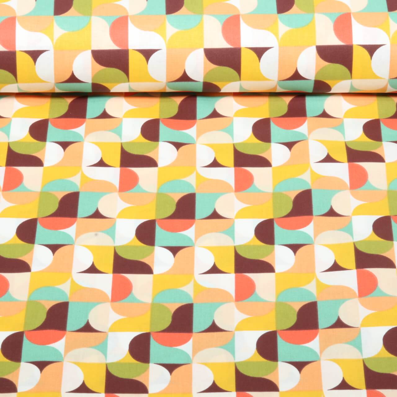 Coton tissé Retro Geo Terracotta Multicolore
