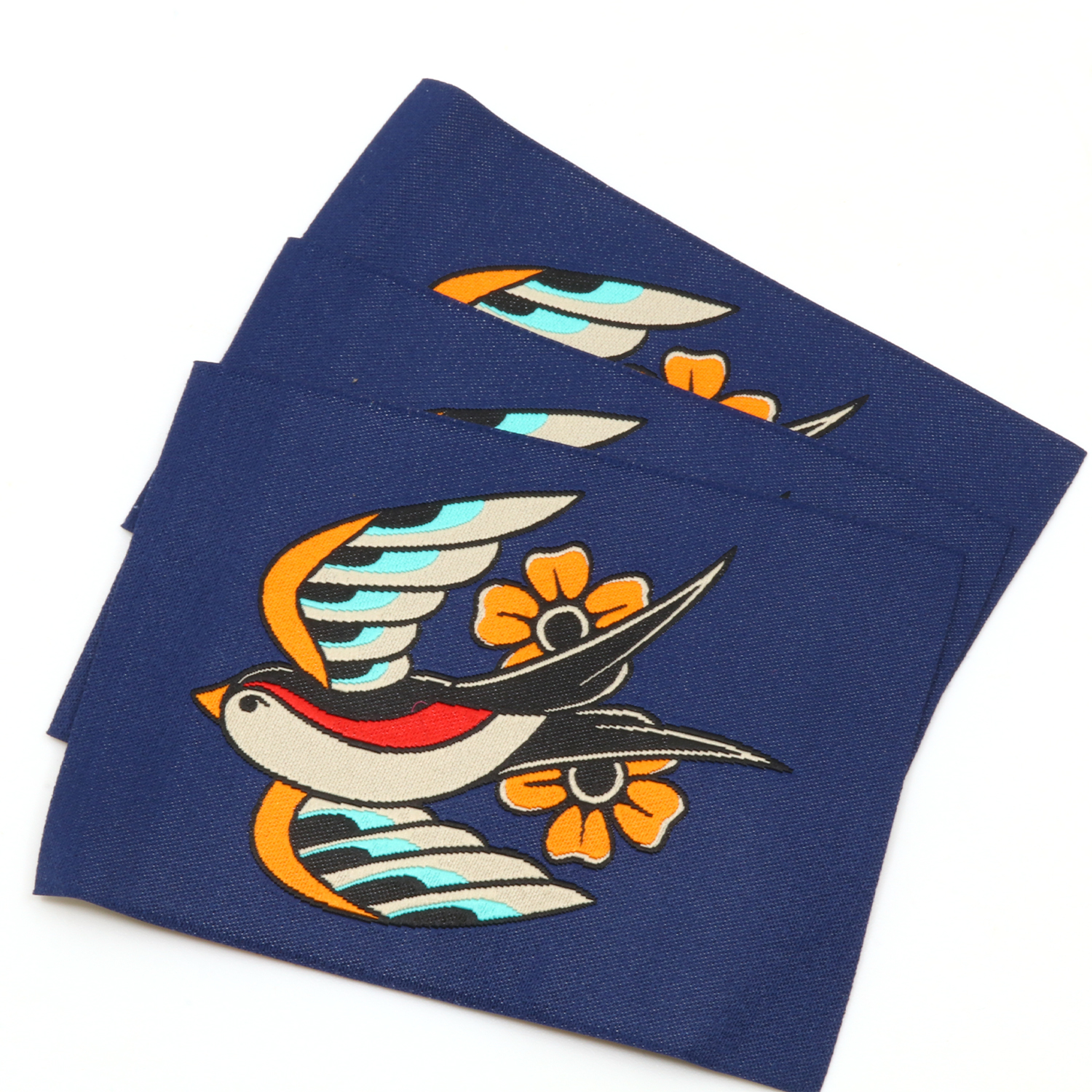 Étiquette tissée XL - Tattoo Hirondelle - 60 x 80 mm