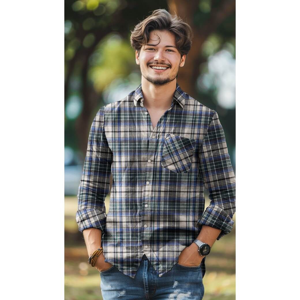 Flanelle de coton - à carreaux Beige Bleu Multicolore