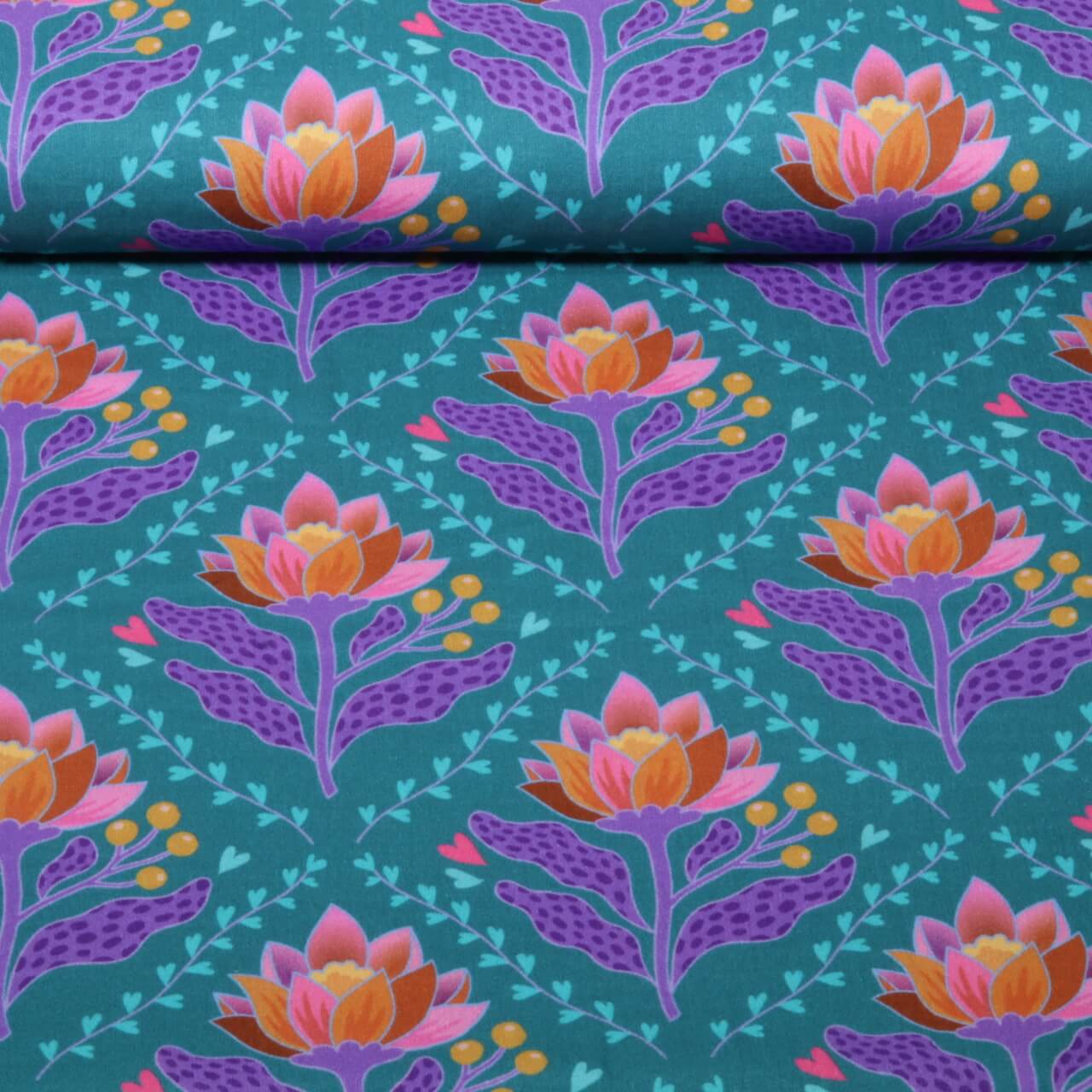 Gaze de coton bio Lisse - HHL Queen Of Hearts Lotus Royal Bleu pétrole