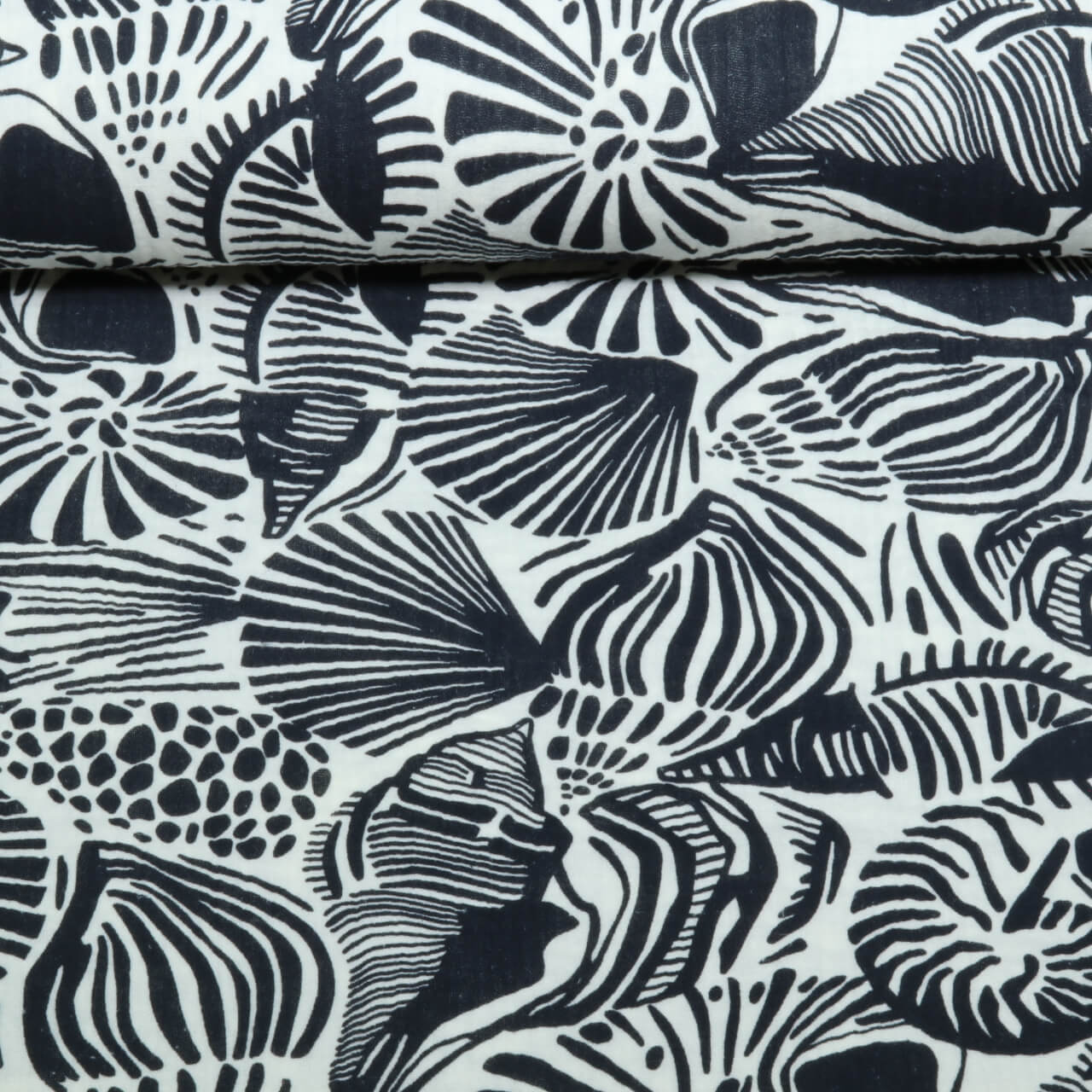 Gaze de coton - Coquillages Blanc Noir