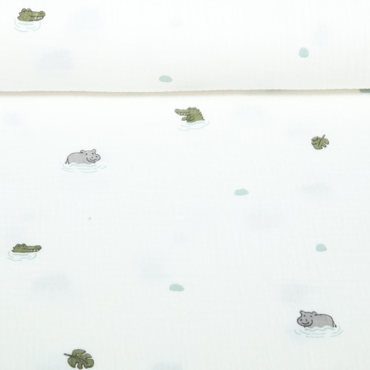 Gaze de coton - Double gaze Animaux dans l'eau Ecru