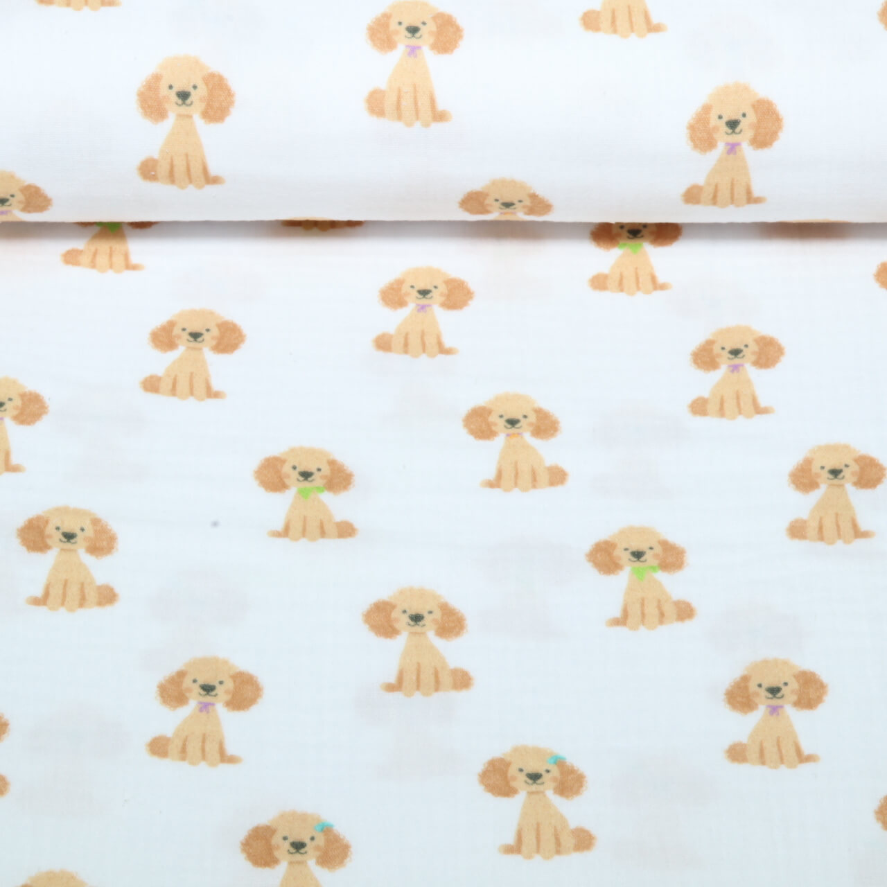 Gaze de coton - Double gaze Impression numérique Pudel Blanc