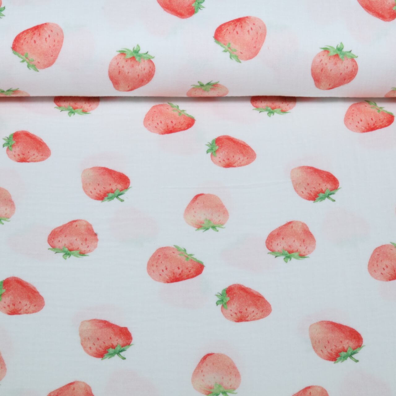 Gaze de coton - Impression numérique fraises Blanc
