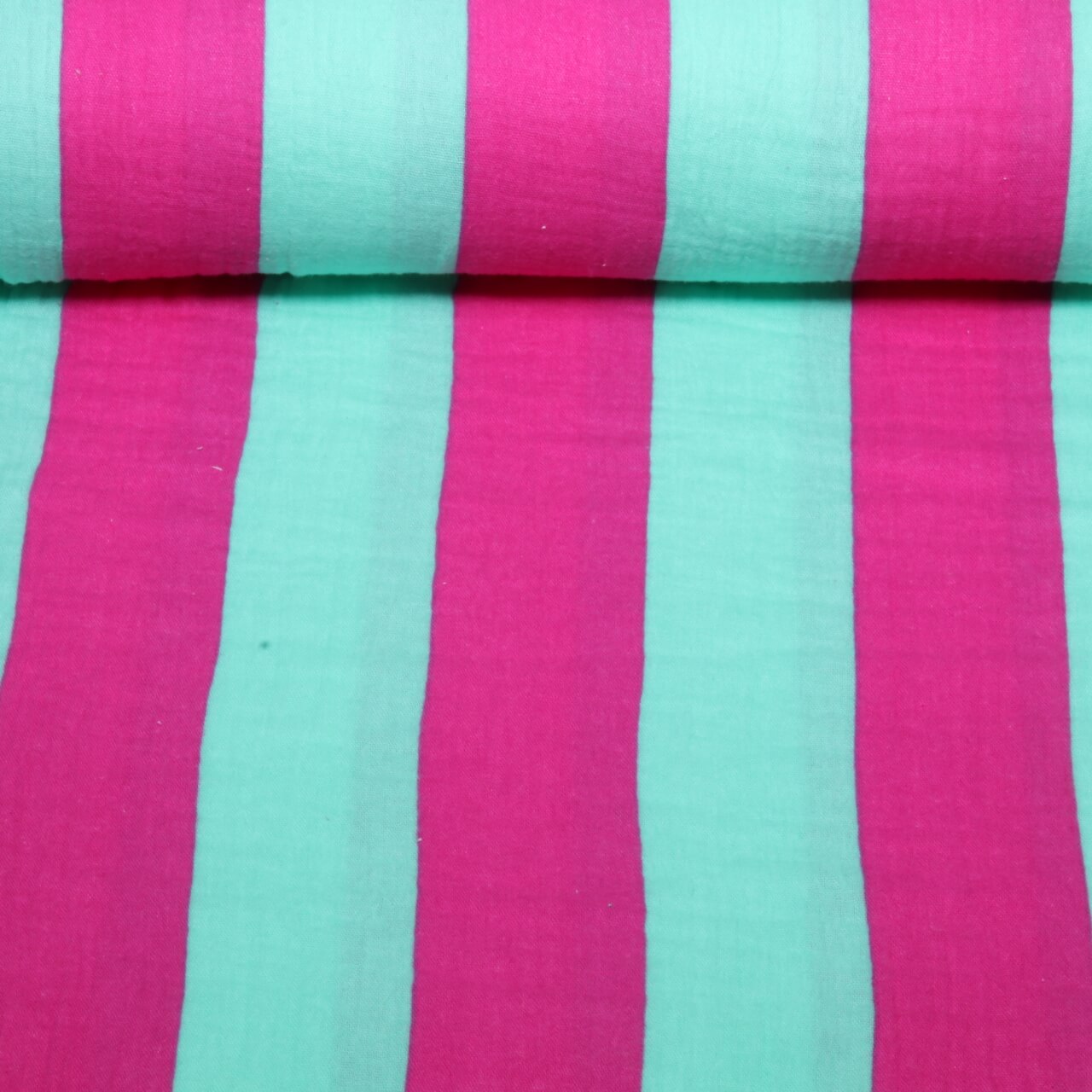 Gaze de coton - Rayures en bloc Rose vif