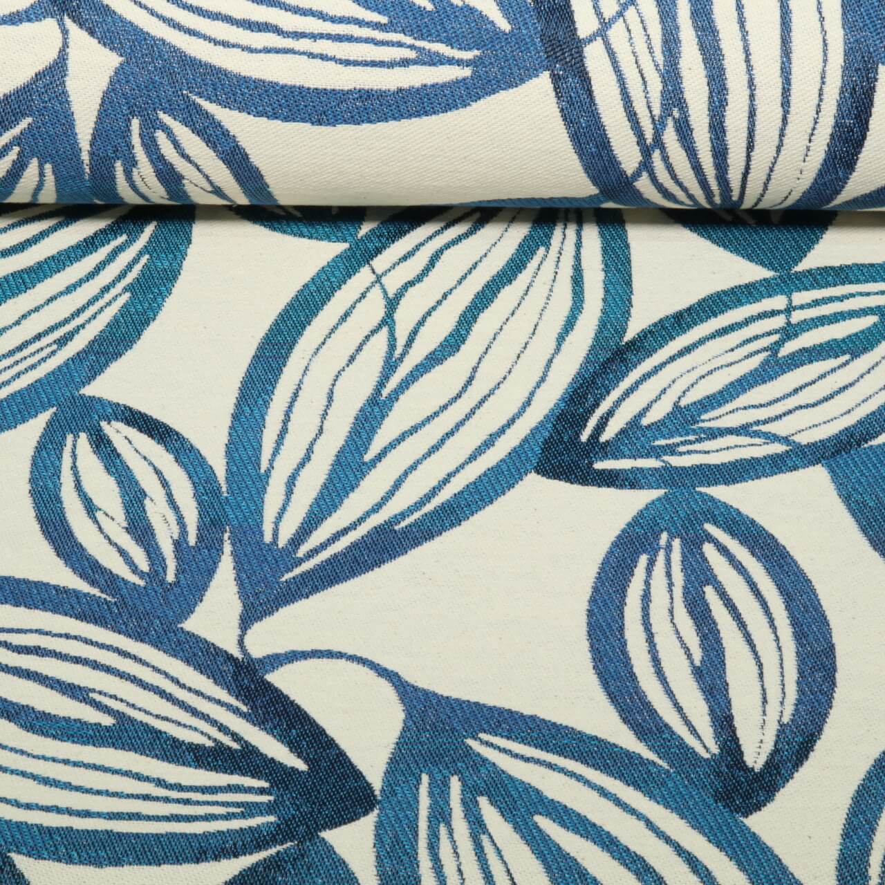Gobelin Jacquard - Grandes feuilles Ecru Bleu