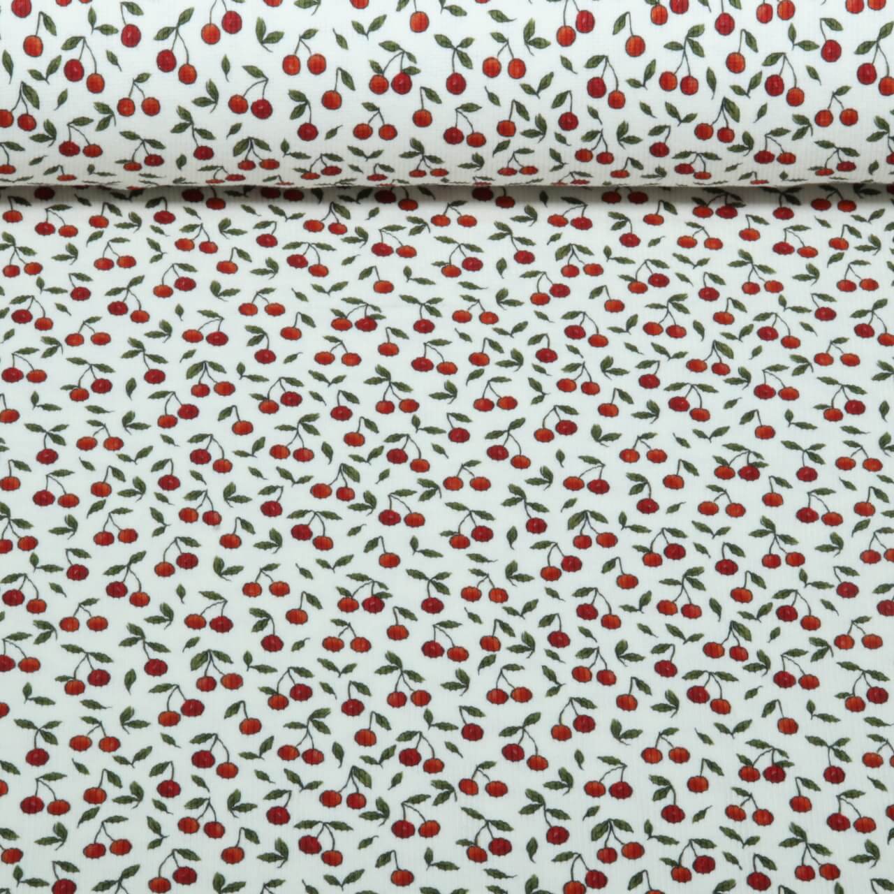 Jersey côtelé - Impression numérique cerises Ecru