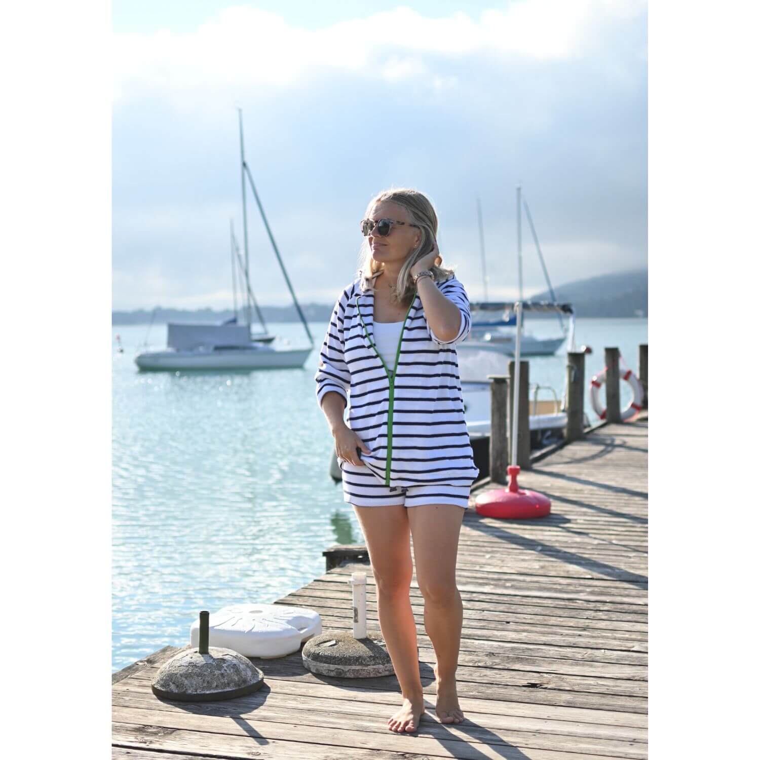 Jersey éponge - Hamburger Liebe rayures Bleu marine