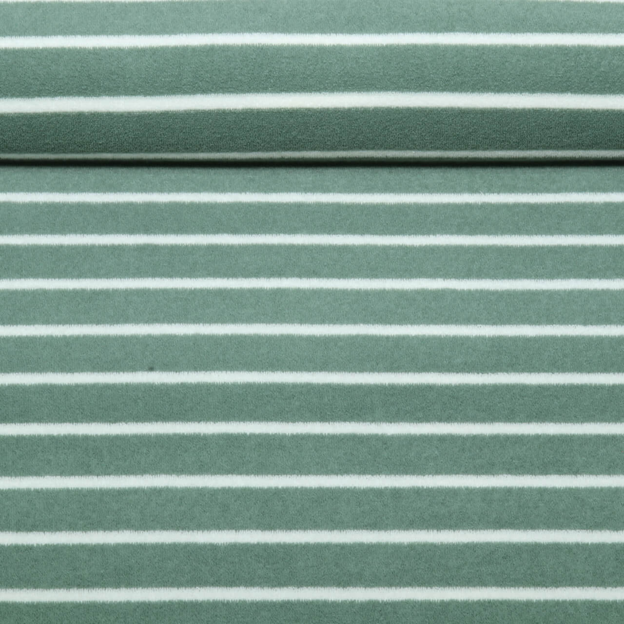 Jersey éponge - Rayures sauge Ecru Teint dans la masse