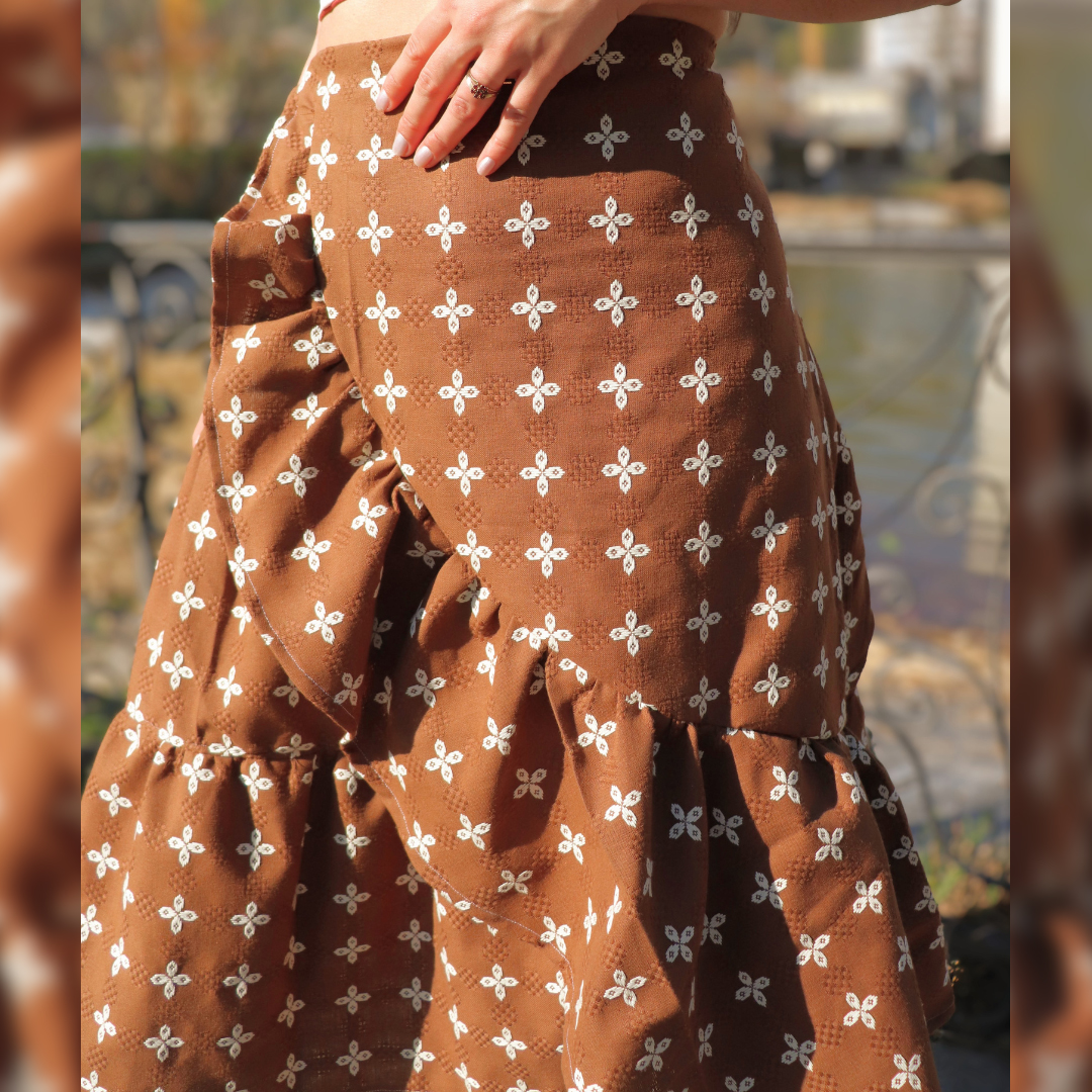 Le patron Sakatl Rock est un patron qui vous permettra de coudre une jupe à volants asymétriques et une poche.