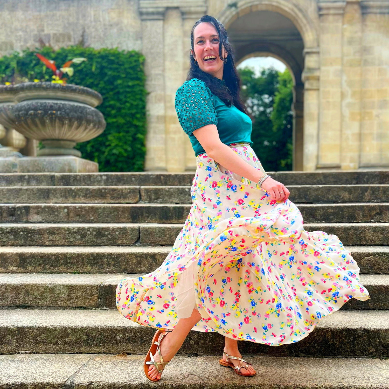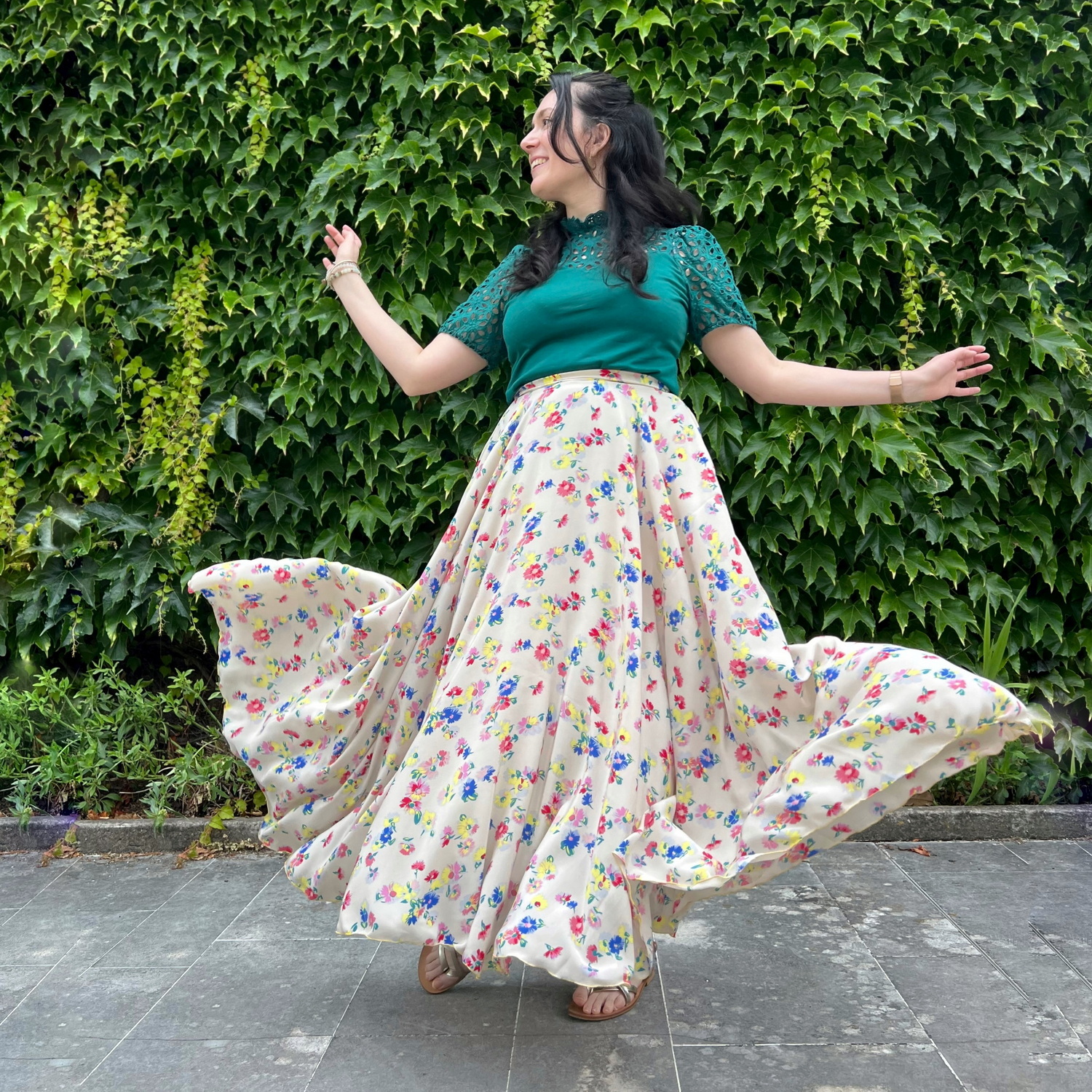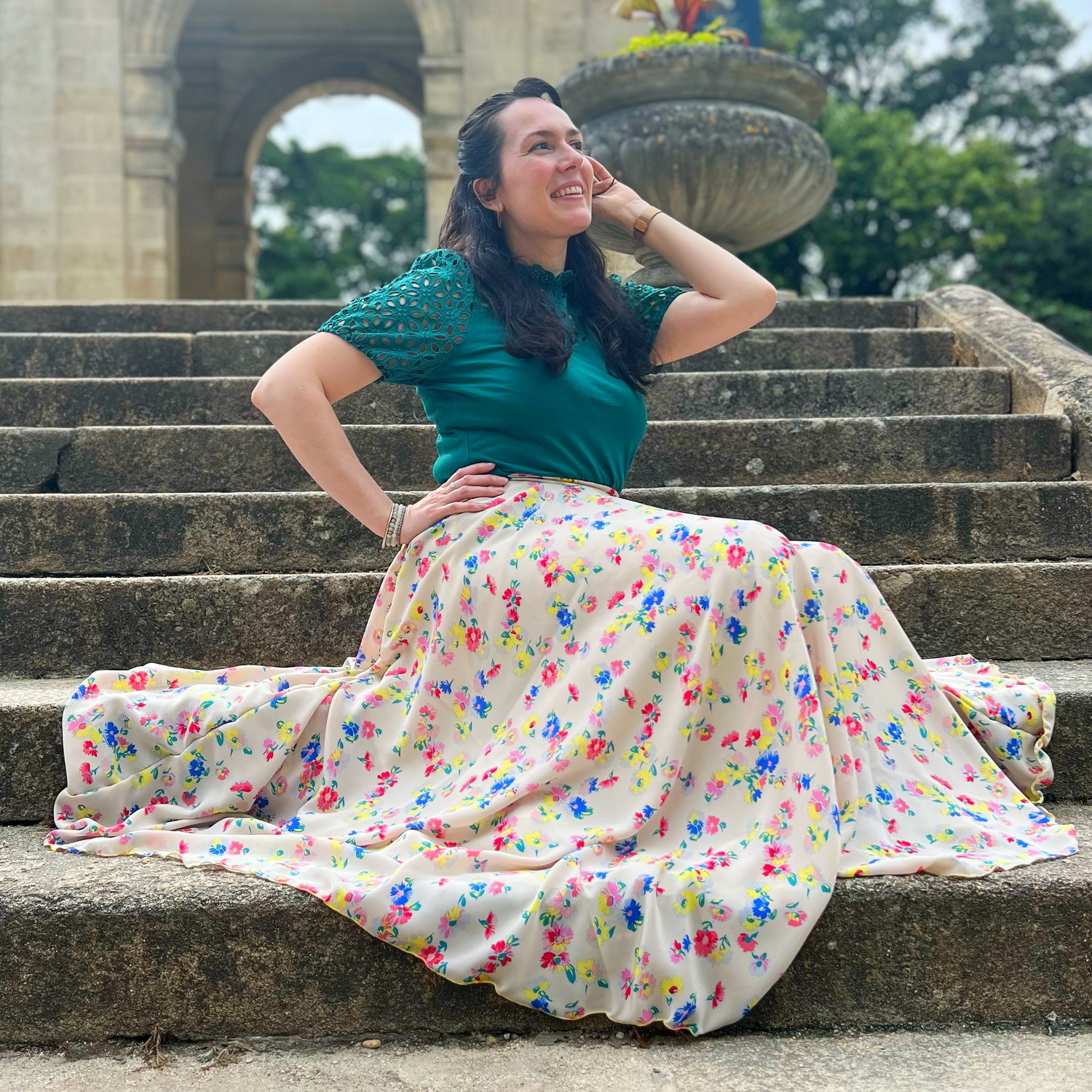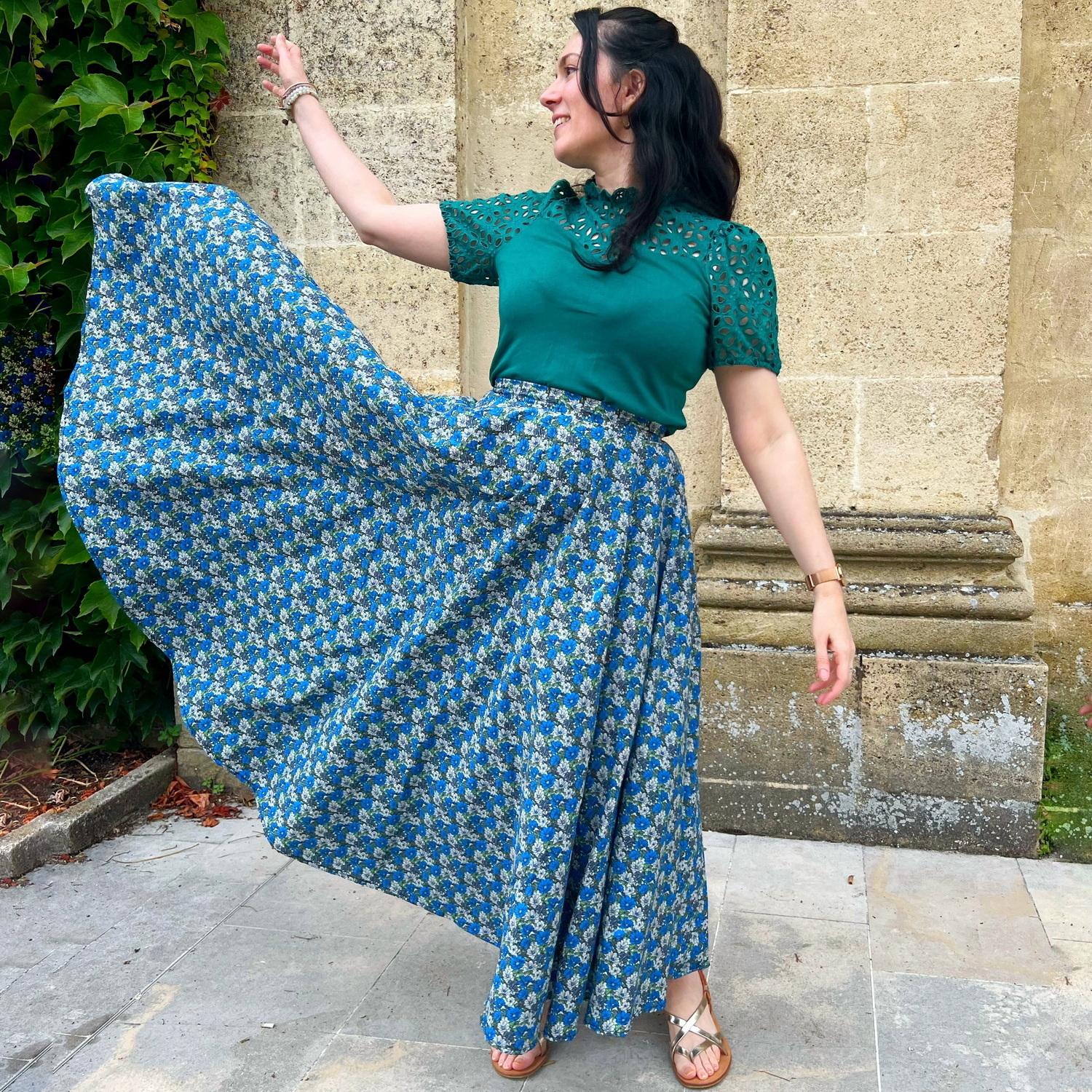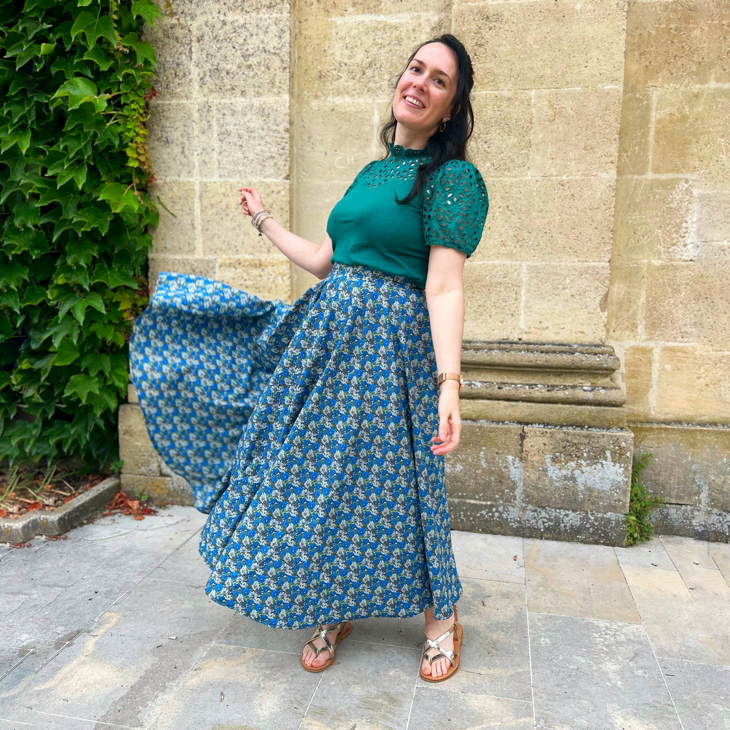 Le patron jupe cercle TERESA permet de coudre la jupe qui tourne par excellence ! Avec sa belle ampleur et sa ceinture ajustée taille haute, Teresa est un modèle très féminin.