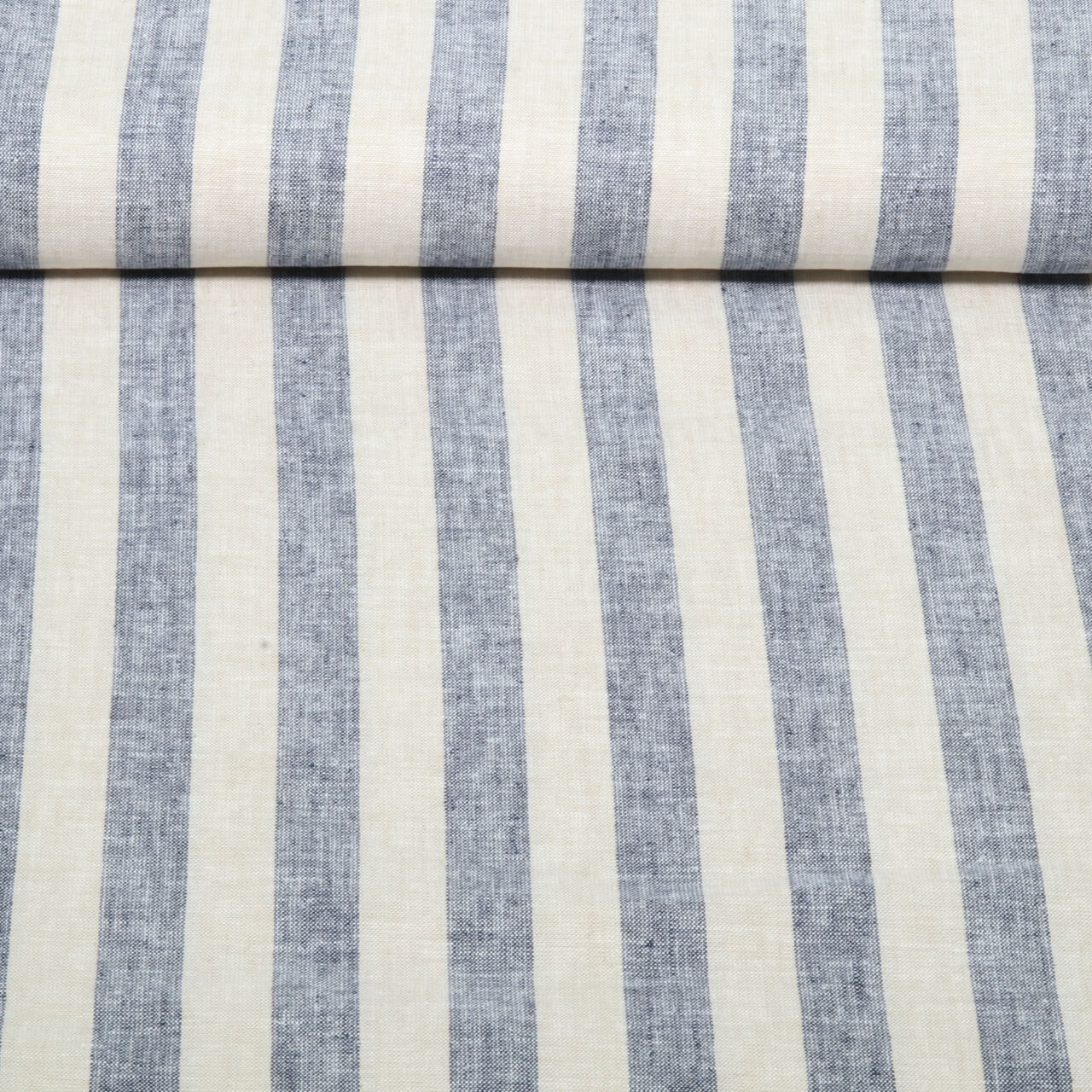 Lin - Rayures Beige Bleu marine Teint dans la masse