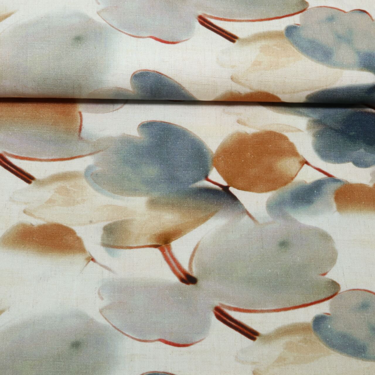 Lin viscose - Impression numérique feuilles de ginkgo Beige