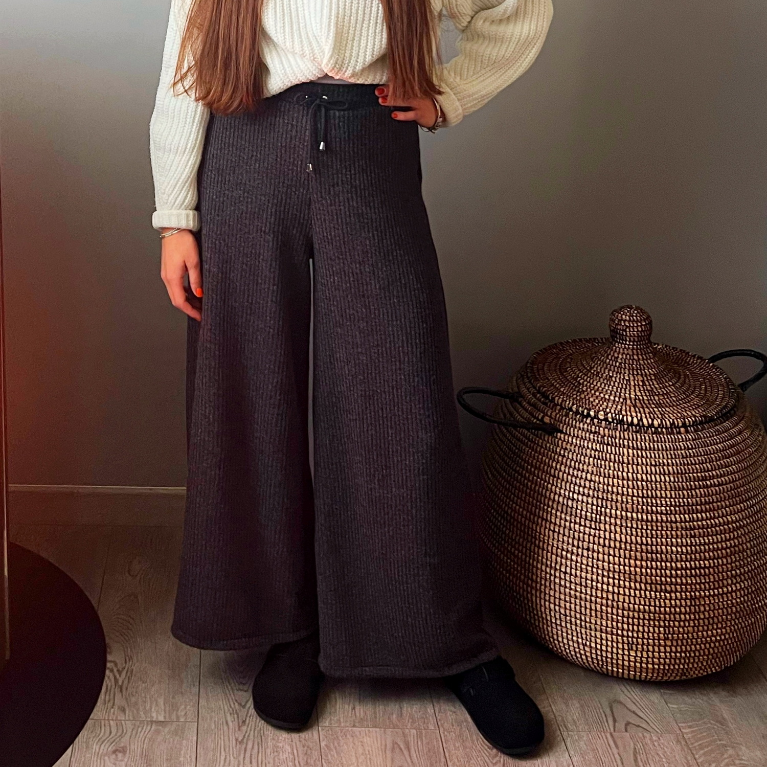 Sheila est un pantalon ultra large avec une taille haute élastique. Avec sa belle ampleur de jambe et sa ceinture équilibrée, c’est un modèle très féminin.
