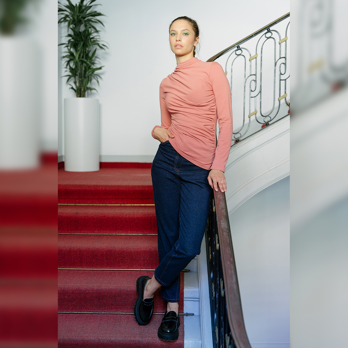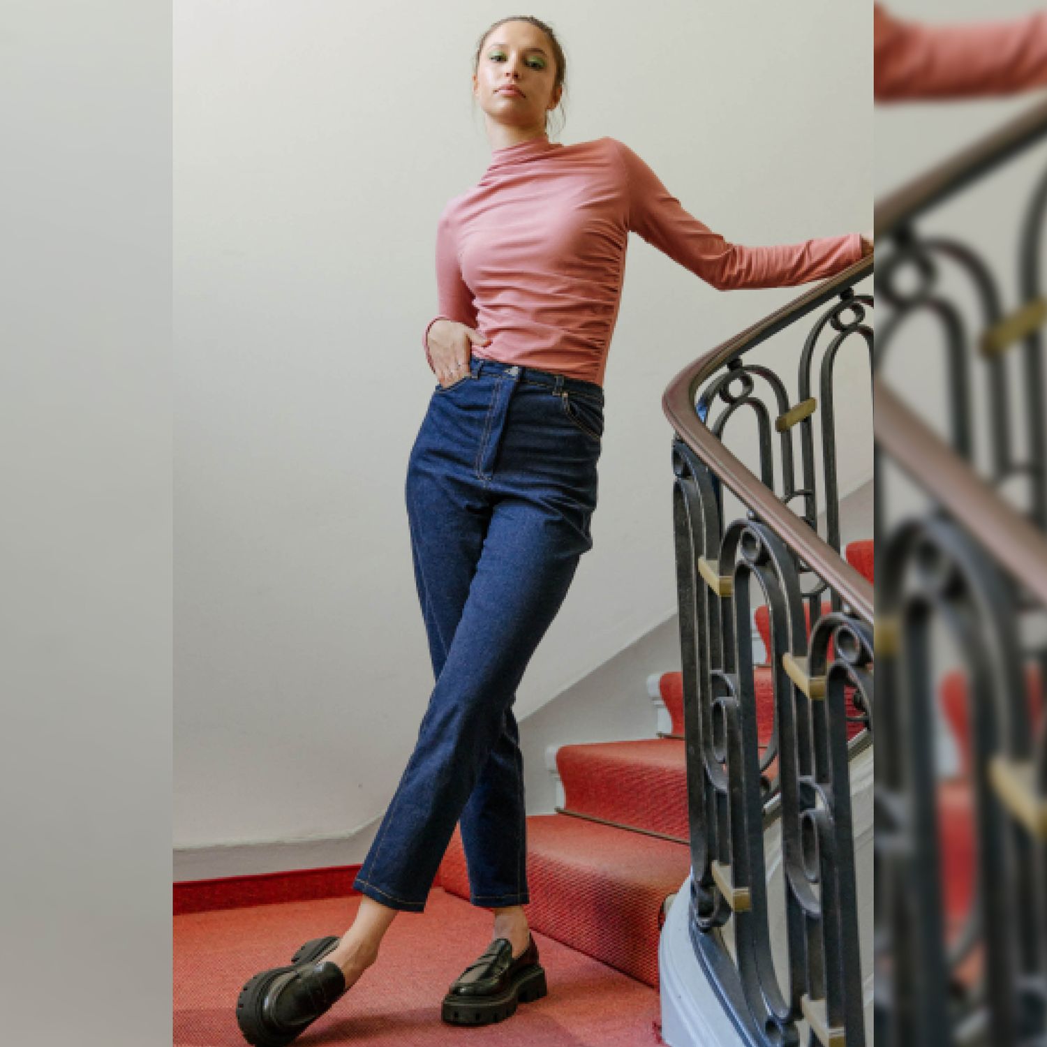 En tant que patron de jean, il se concentre sur l’essentiel : de bonnes proportions, une taille haute flatteuse et une silhouette nette. Le jean droit s’ajuste confortablement sans donner d’effet informe.