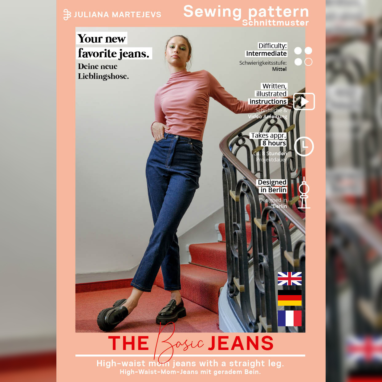 - Tutoriel vidéo sur Youtube inclus (en allemand, sous-titres en anglais possibles) : The Dina Jeans (les étapes de couture sont presques identiques.)