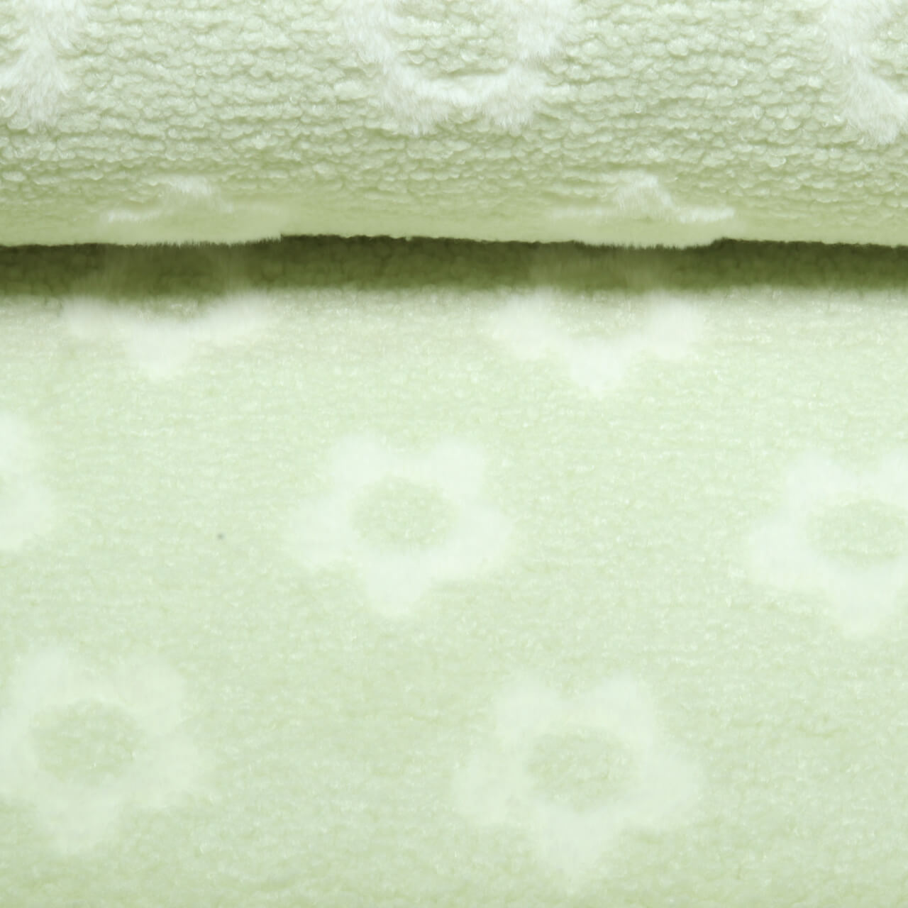 Polaire teddy - Jacquard Fleurs Menthe Blanc