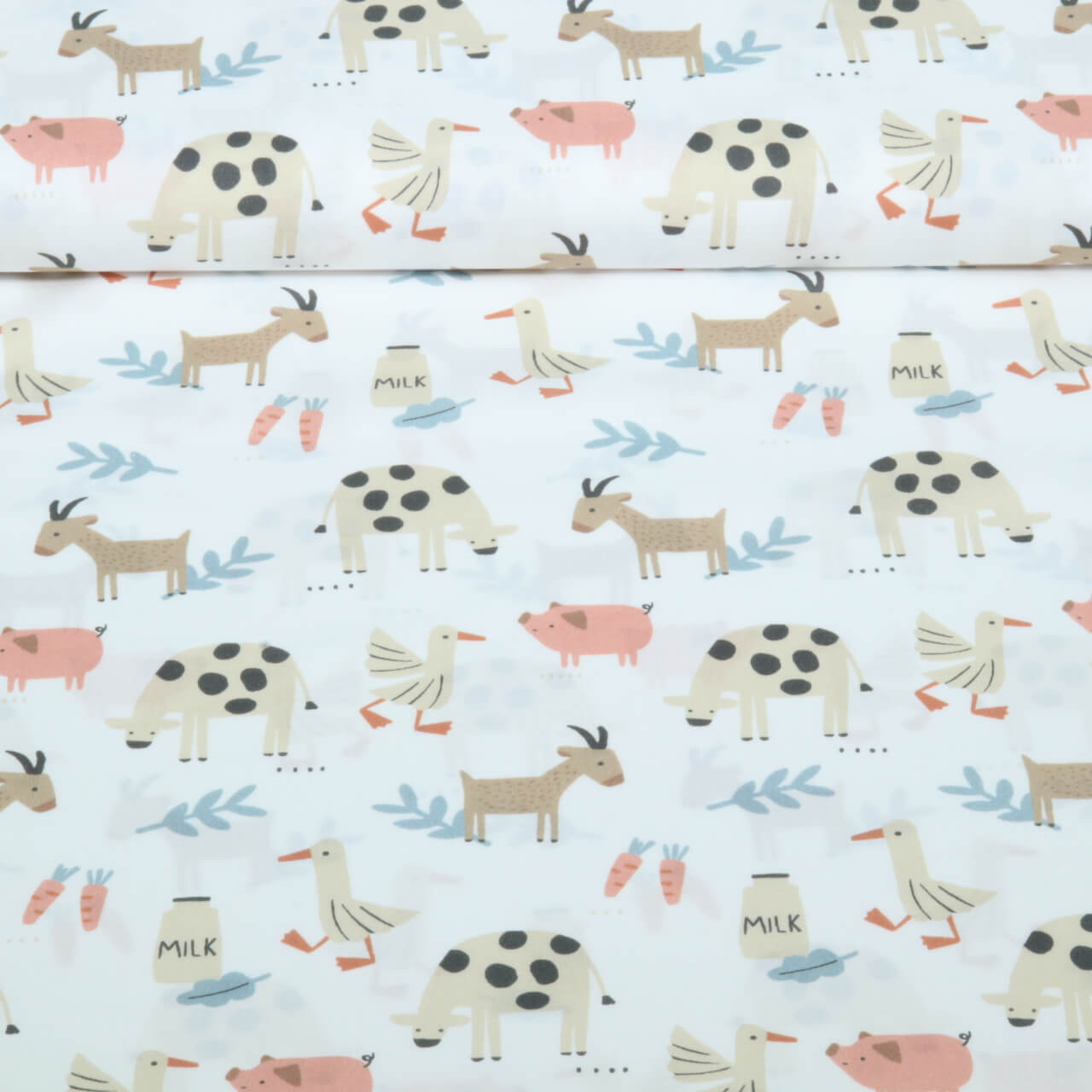 Popeline de coton bio - Animaux de la ferme Blanc