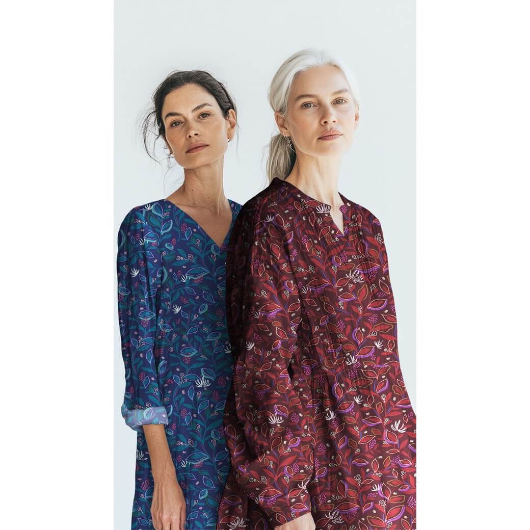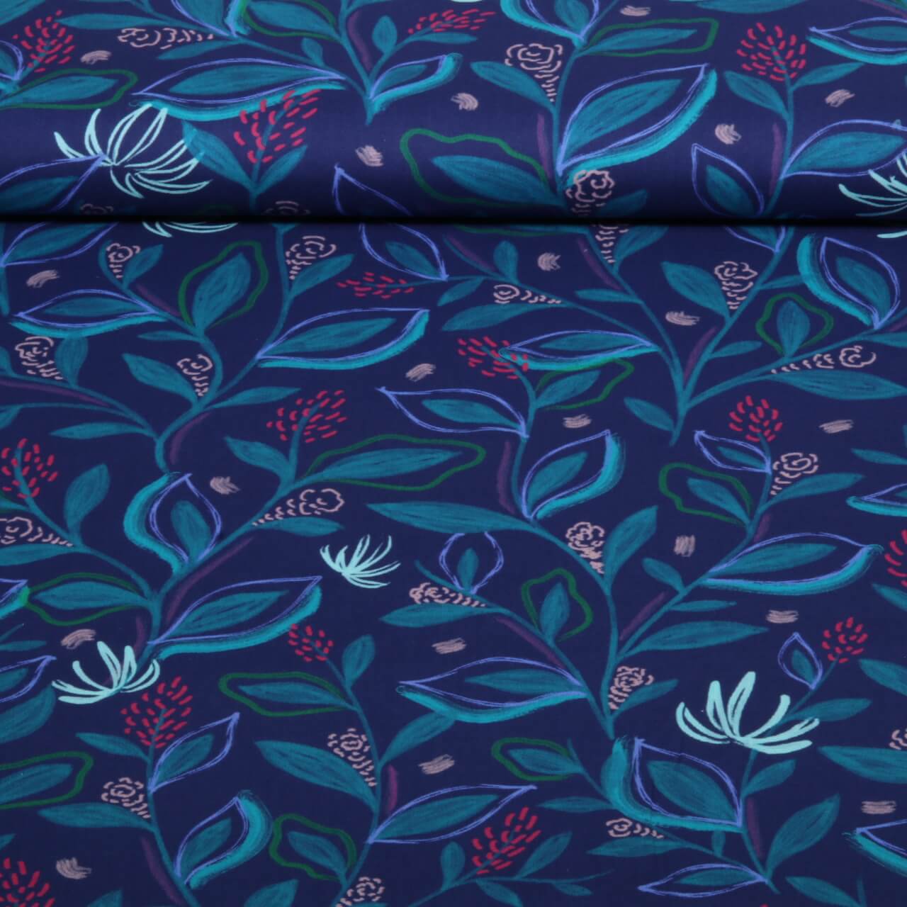 Popeline de coton - Digital branches feuillues Bleu marine foncé