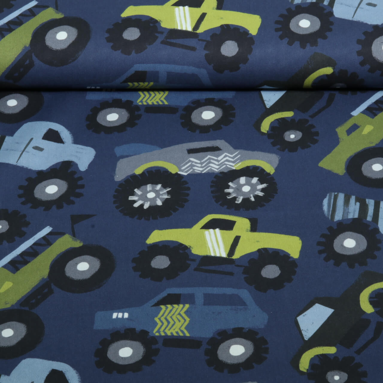 Popeline de coton - Impression numérique Monstertrucks Bleu marine