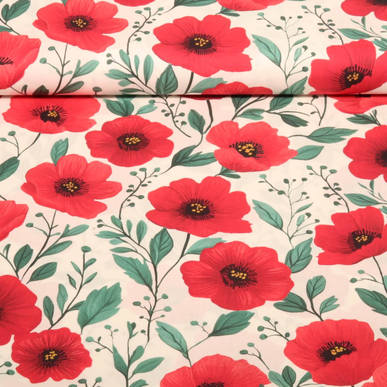 Popeline de coton - Impression numérique coquelicots Blancs