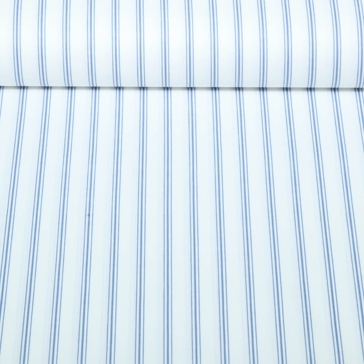 Popeline de coton - Tissu pour chemise Percale rayures Blanc Bleu
