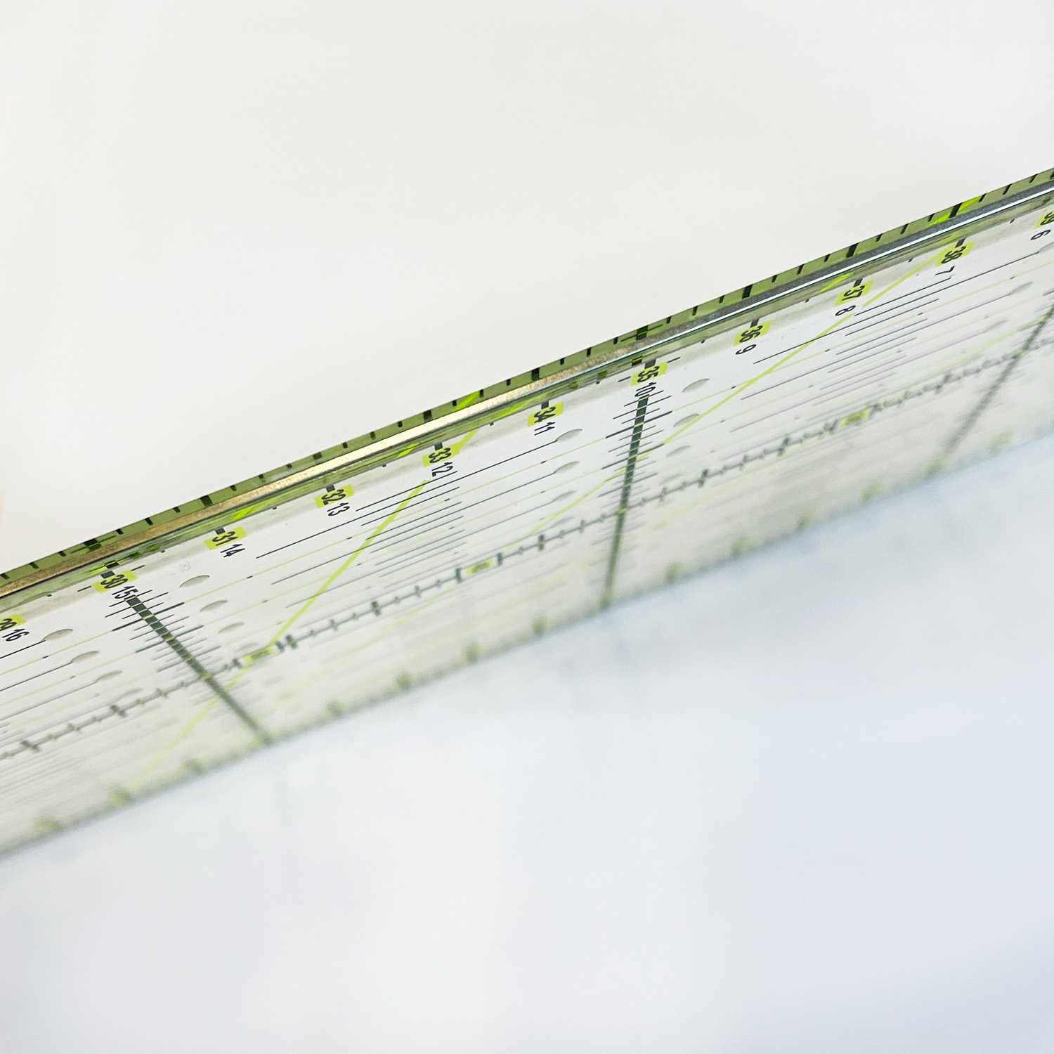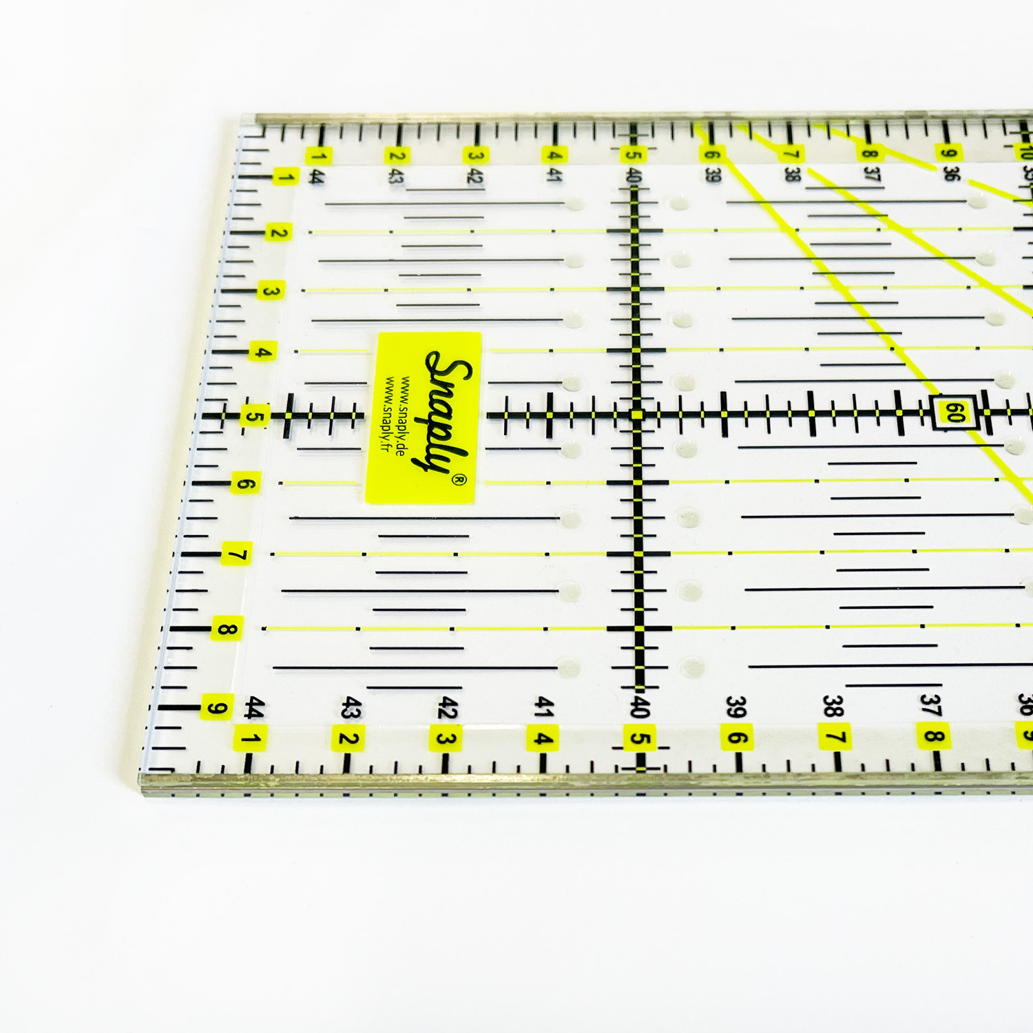 Idéale pour découper les tissus, biais, bords côtes, projets de patchwork et bien plus encore. Grâce aux picots antidérapants au dos, la règle reste bien en place même sur les tissus lisses ou extensibles, pour des découpes nettes sans glissement.