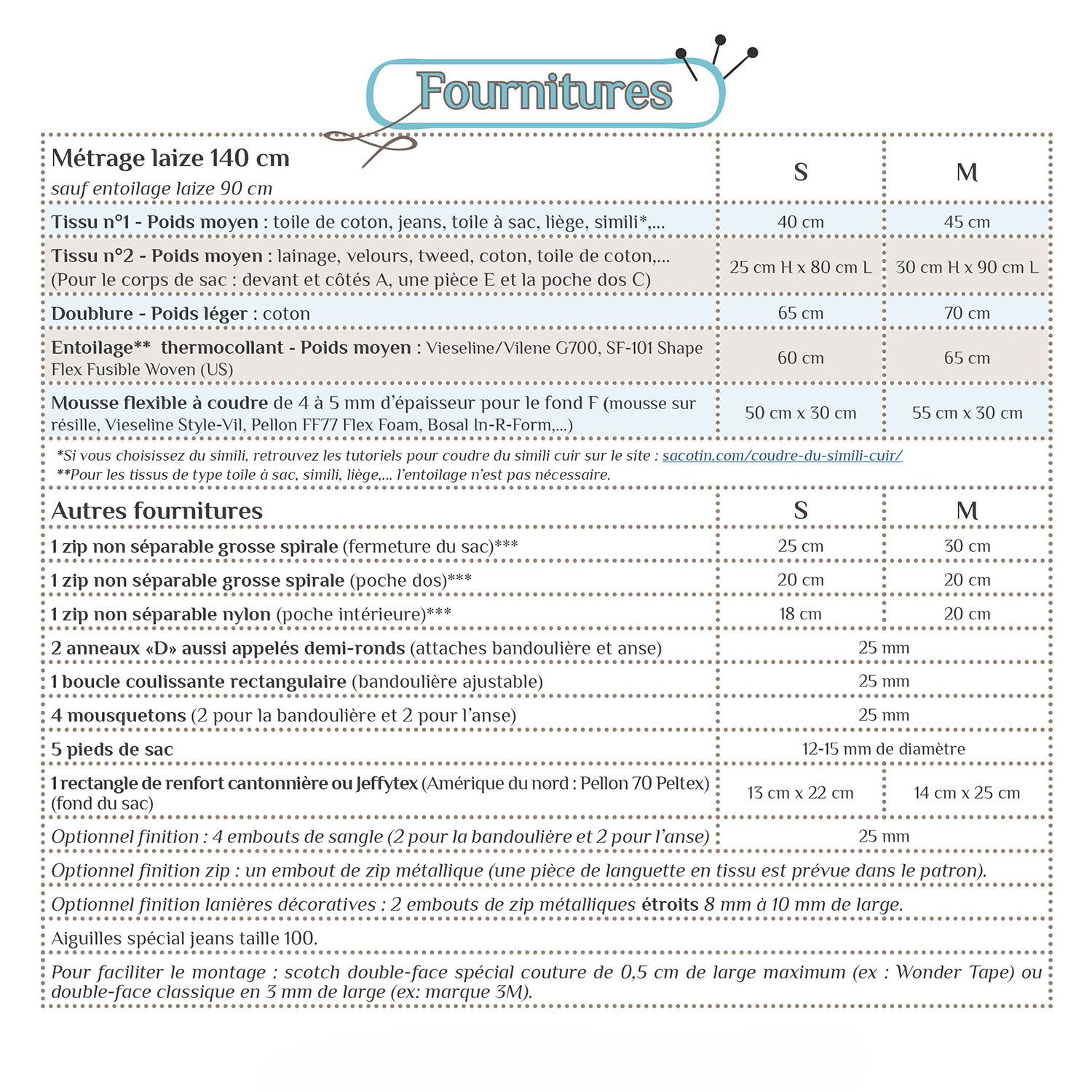 *Pour les tissus de type toile à sac, simili, vinyl, liège... l’entoilage n’est pas nécessaire.