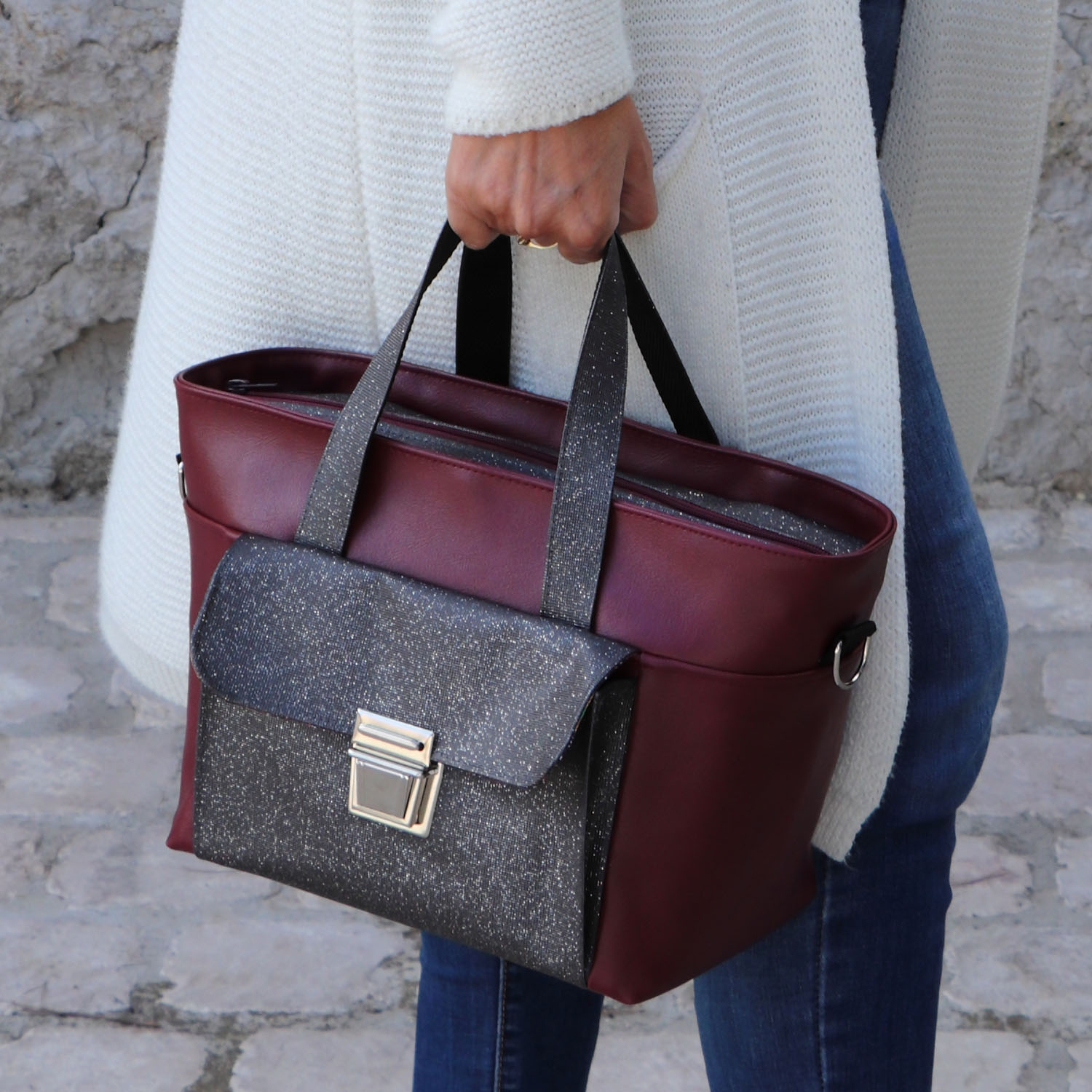 Envie de le transformer en sac à main ? C’est possible ! Rendez-vous page 5 pour les quelques adaptations à prévoir.
