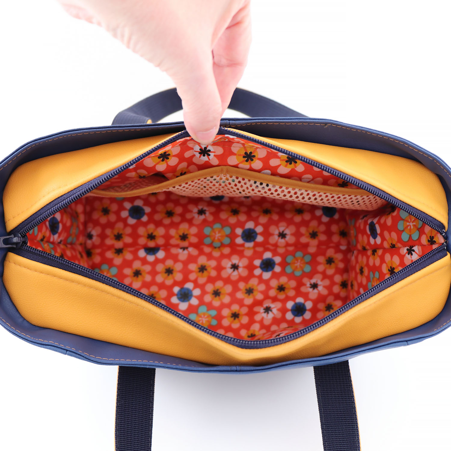 - Optionnel poche intérieure : tissu filet et biais