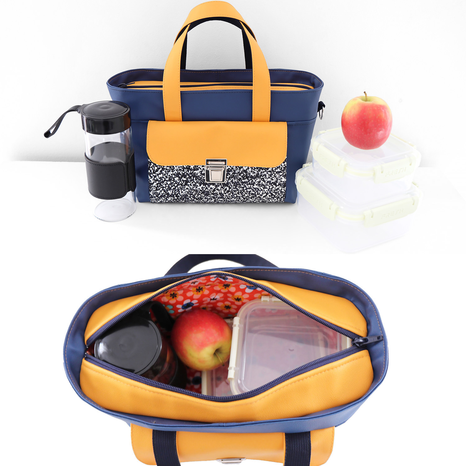 Sa fermeture zippée intégrale limite les pertes de fraîcheur, et l’intérieur est doublé pour une finition soignée.