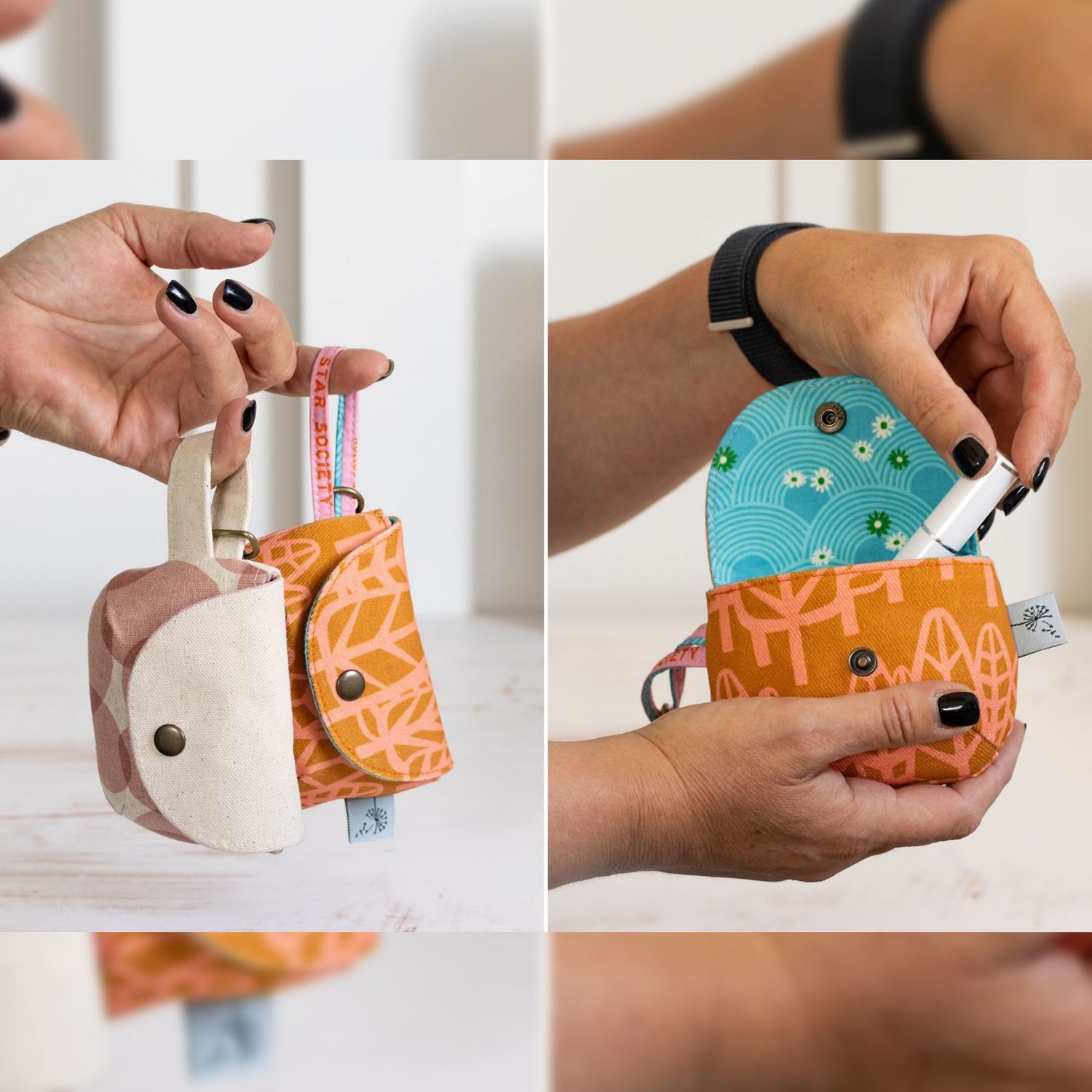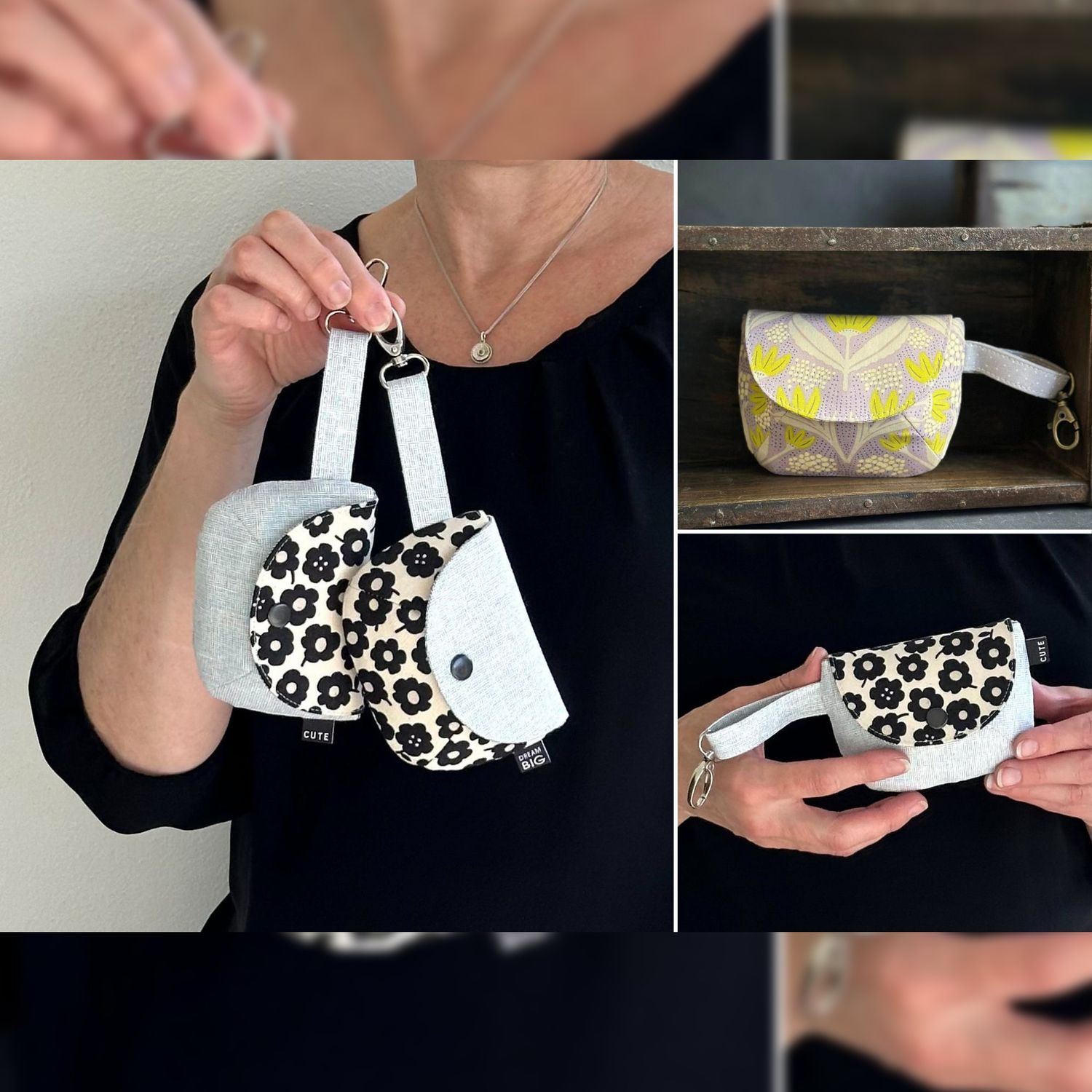 Cette adorable petite pochette est proposée en 2 tailles. Son montage simplifié en fait un projet idéal pour les débutants en couture.