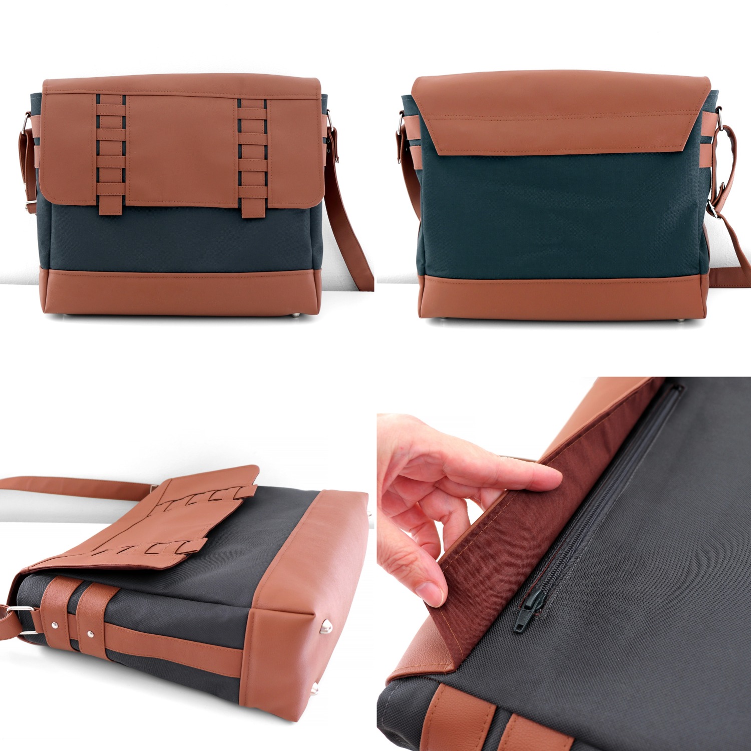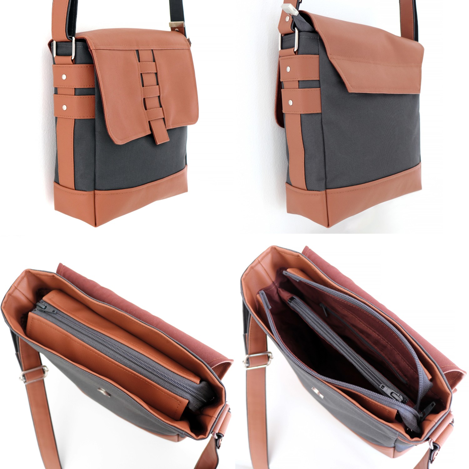 Vos affaires s’y organiseront facilement grâce à ses 4 poches : une plaquée, une zippée et une séparation centrale zippée qui compartimente l’espace intérieur, ainsi qu’une poche zippée cachée par le rabat au dos du sac.