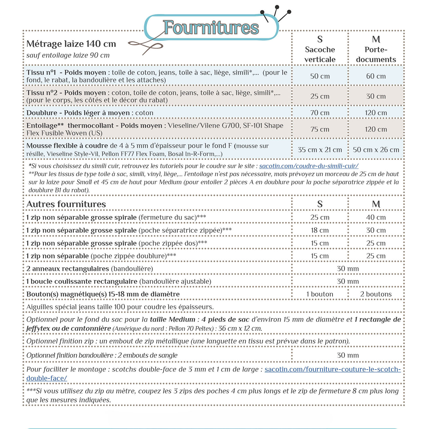 *Pour les tissus de type toile à sac, simili, vinyl, liège... l’entoilage n’est pas nécessaire.