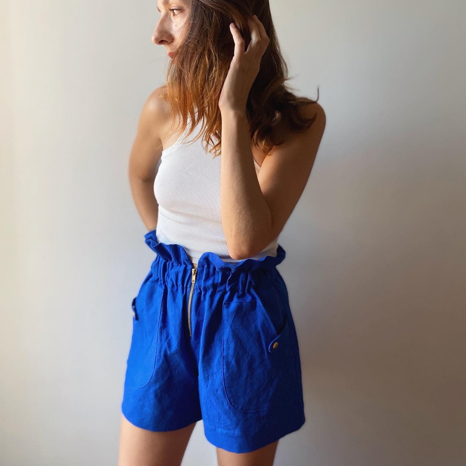 Otis, c’est le short parfait, votre atout style pour toutes les saisons. Complètement dans l’air du temps avec sa forme « Paper bag »; le short Otis ira à toutes les silhouettes. Son petit plus, l’originalité de ses rabats pressionnés à la ceinture et trois styles de poches plaquées devant à mixer selon vos envies. Grande poche classique rectangle, poche arrondie avec ou sans pression, et grande poche triangle effet couture.