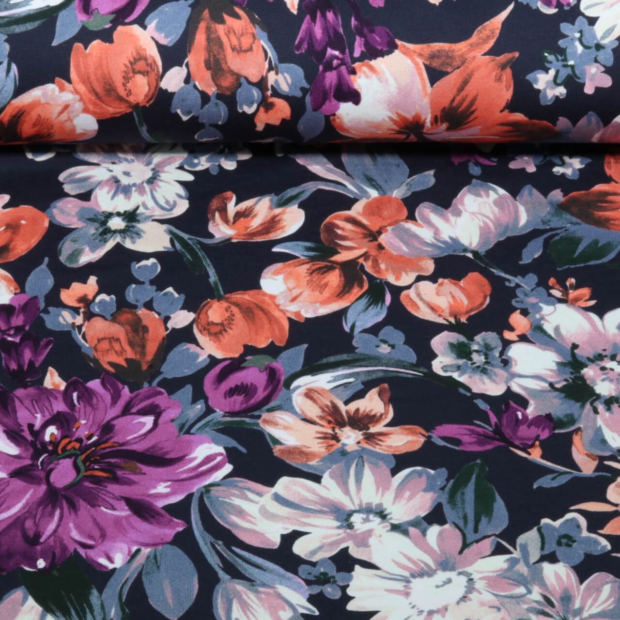Sweat d'été - Sweat French Terry Fleur Bleu marine
