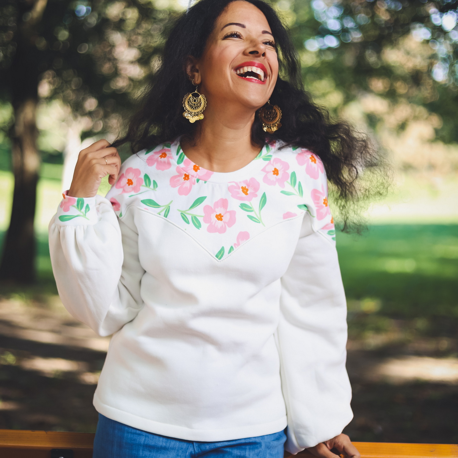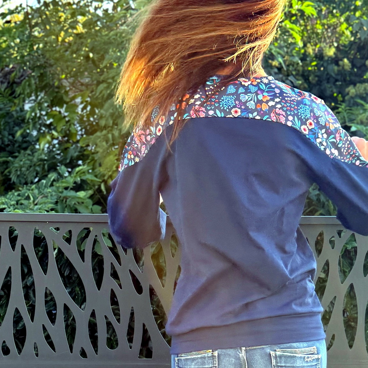 Le patron pull ROSA permet de coudre un pull en jersey ou une blouse en tissu chaîne et trame. Avec sa découpe en forme de coeur sur la poitrine et dans le dos, les différents empiècements permettent de jouer sur les matières pour créer des hauts originaux.