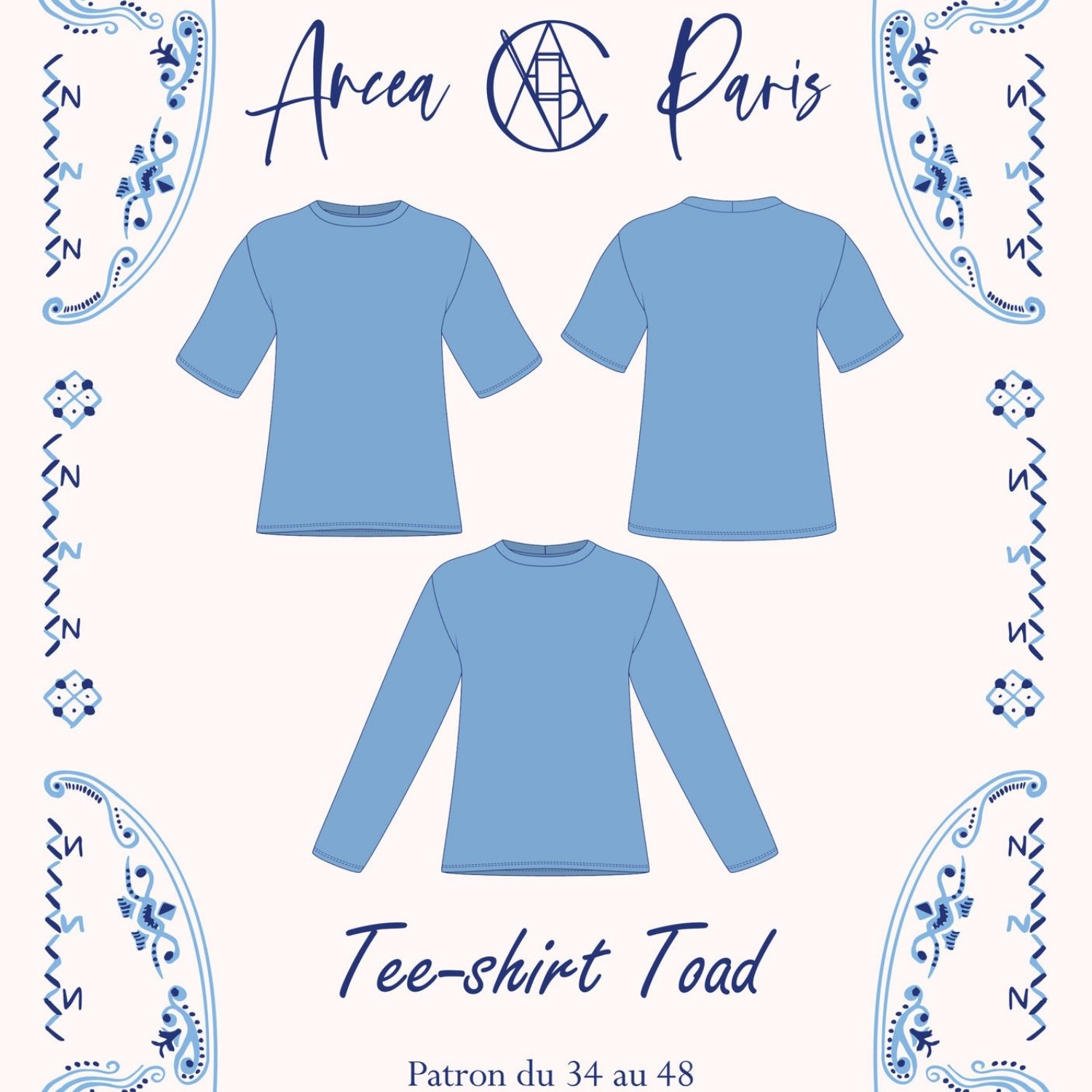 - Patron en fichier PDF au format A4 et A0 (marges de couture incluses : 0,5 cm pour le col, 1 cm pour les manches et le bas du vêtement)