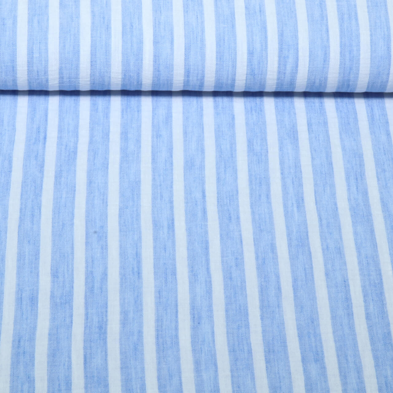 Tissu robes et blouses - Aspect lin rayures Bleu clair