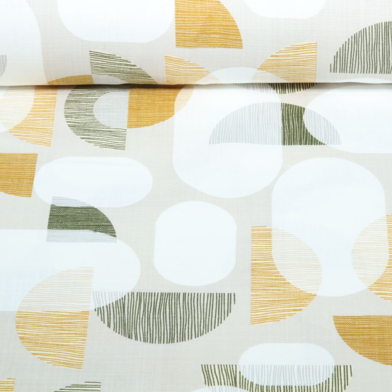 Toile canevas en coton - aspect lin formes rétro Blanc