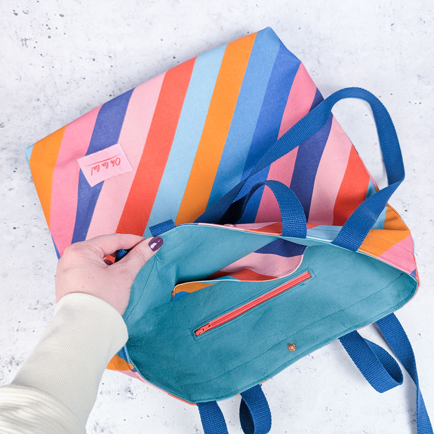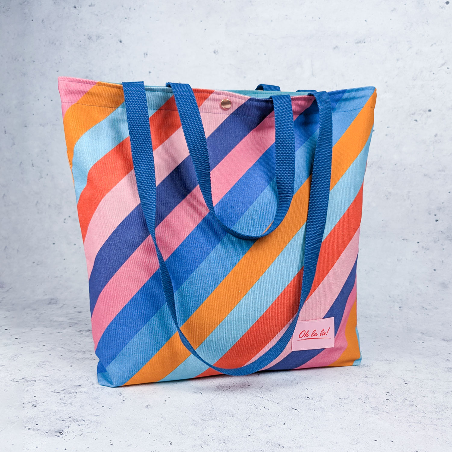 Toile de coton canevas Hugo & Hilda - Rayures diagonales Multicolore