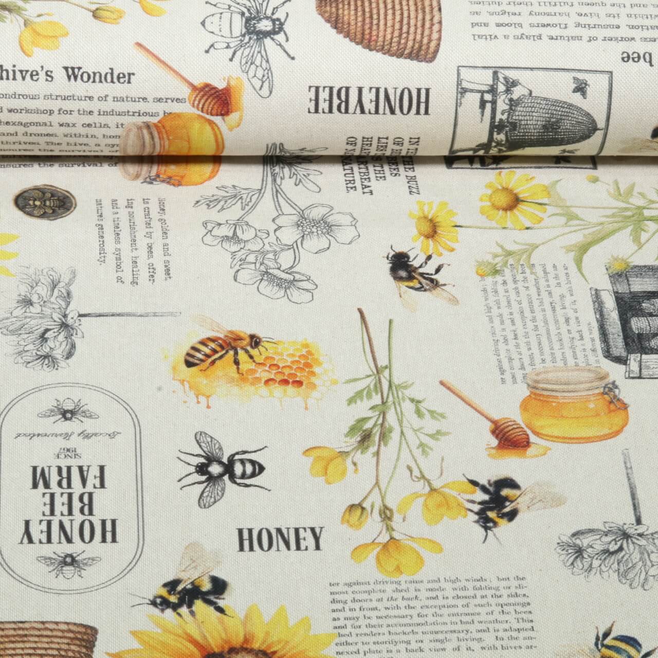 Toile numérique aspect lin miel Beige