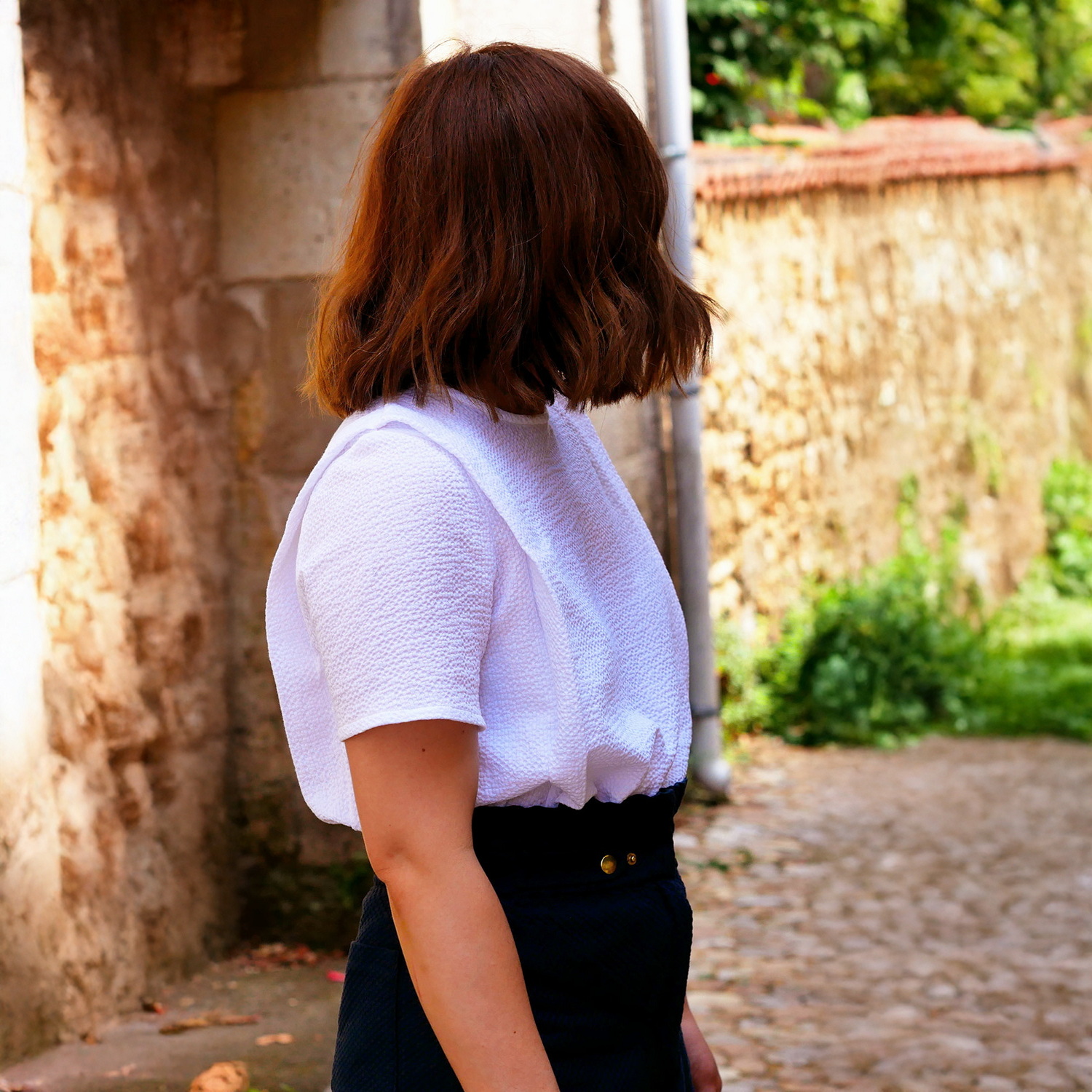 Cependant, la magie du Faro réside dans sa polyvalence ! Si vous optez pour des tissus chaîne et trame, le résultat sera tout aussi séduisant. Assurez vous simplement de choisir une ou deux tailles au-dessus pour une aisance parfaite.